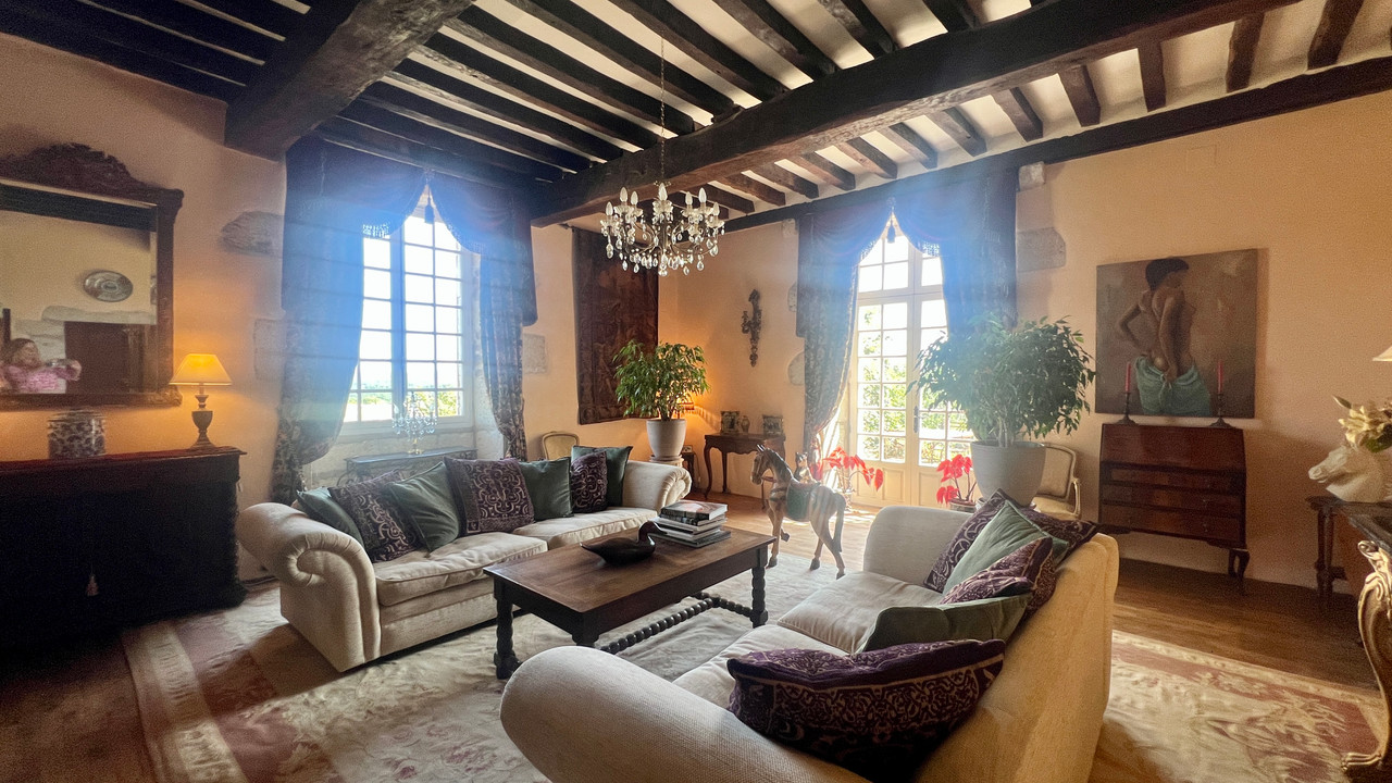 A38673VGR24 - Located in an elevated and prestigious setting on the outskirts of a popular and prestigious village with it's fantastic restaurant and beautiful chateau. This exceptional 14th-century manor house offers a unique blend of historical charm, modern comfort, and breathtaking panoramic views of the rolling Dordogne countryside. Perfect family home, equestrian property and also offers business potential for those seeking an income.