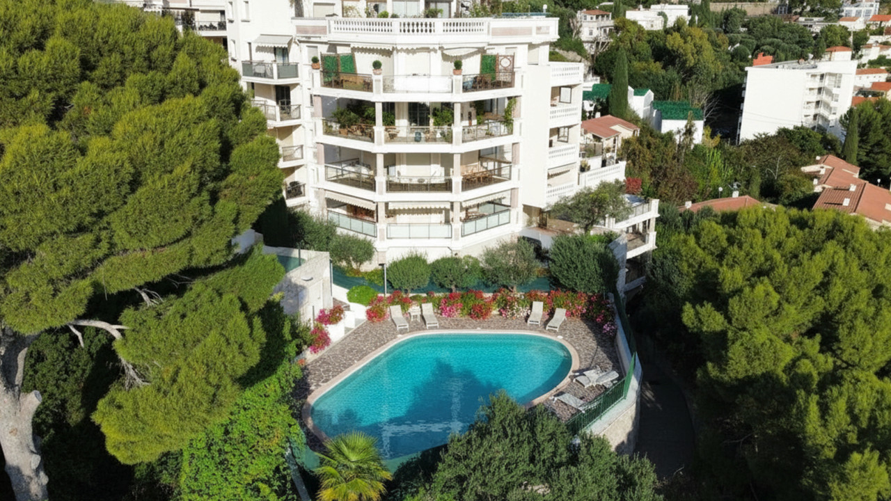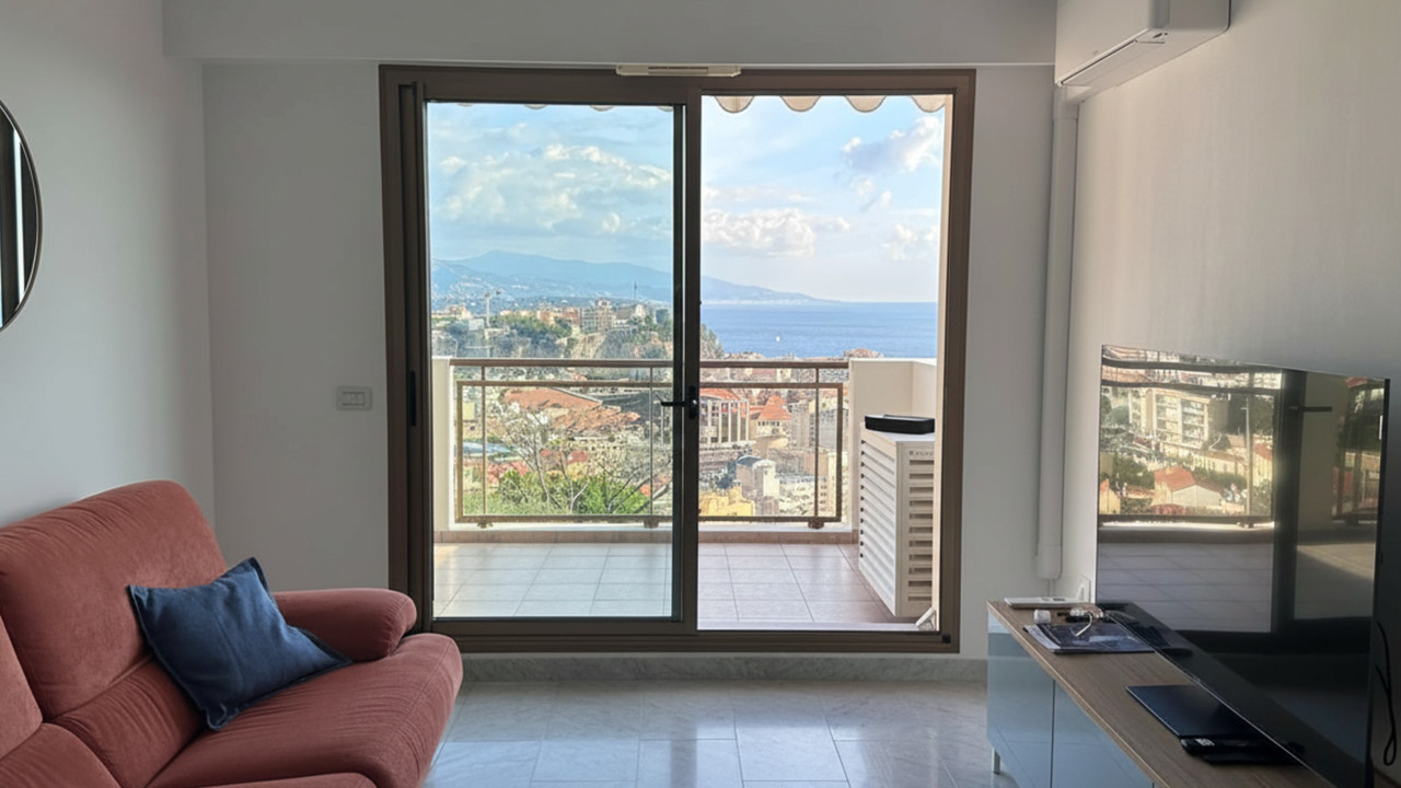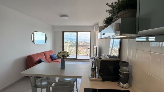 2-room, 41m², 1 bed, 1 bath. Garage and cellar. Swimming pool. Panoramic view. 10 minutes from Monac
