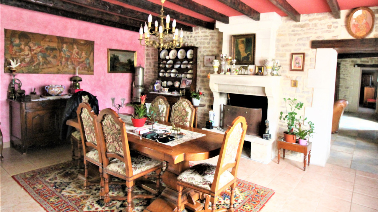 112968TRE16 - This traditional Charentaise long house has been sympathetically renovated and retains many original features, such as exposed beams, stone walls, and fireplaces. It offers generous living accommodation divided over two floors as well as an indoor heated swimming pool and jacuzzi, shower room, WC and hallway.