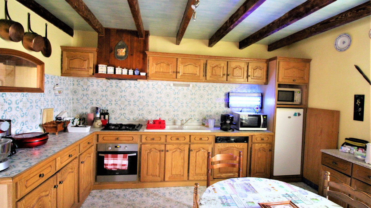It benefits from oil central heating / heat pump, double glazed windows, large terrace for alfresco dining and summer barbecues. Behind the house is a good size vegetable garden, large outbuilding / hangar, 2 garages and other outbuildings for storage etc, fully fenced and not overlooked, private parking.