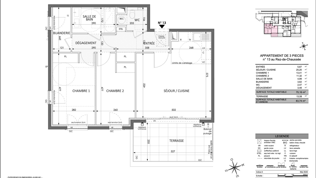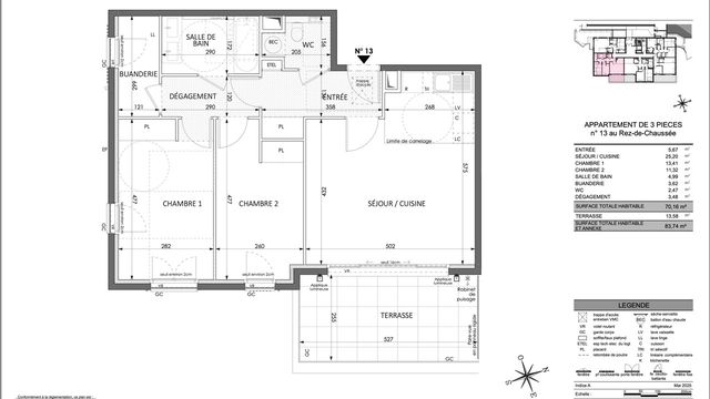 This garden floor apartment has : an entrance hall, living room with an open kitchen opening unto the terrace with South/East exposure, 2 bedroom with cupboards, a shower room, independent toilets, laundry room, cupboard.