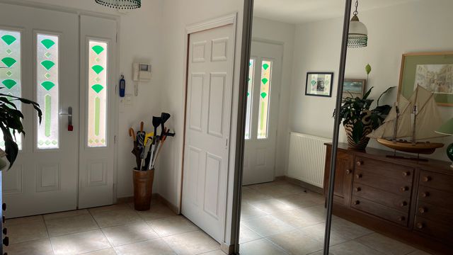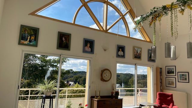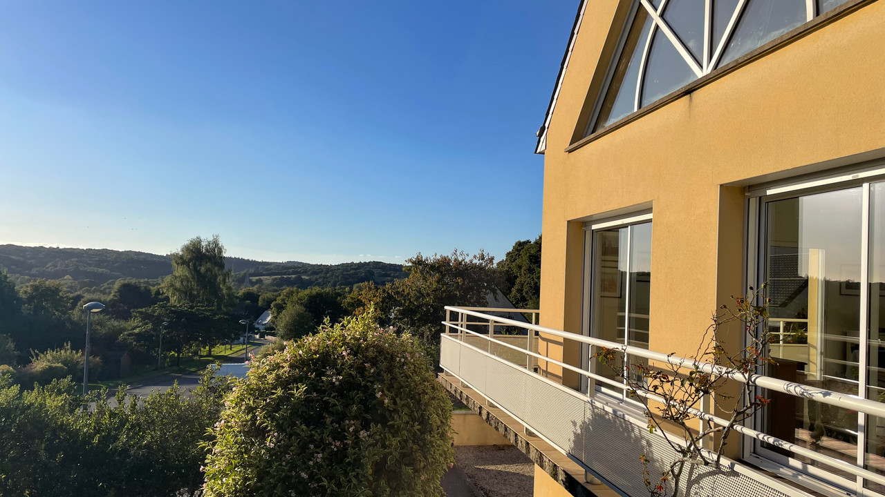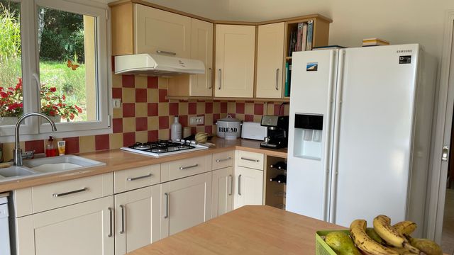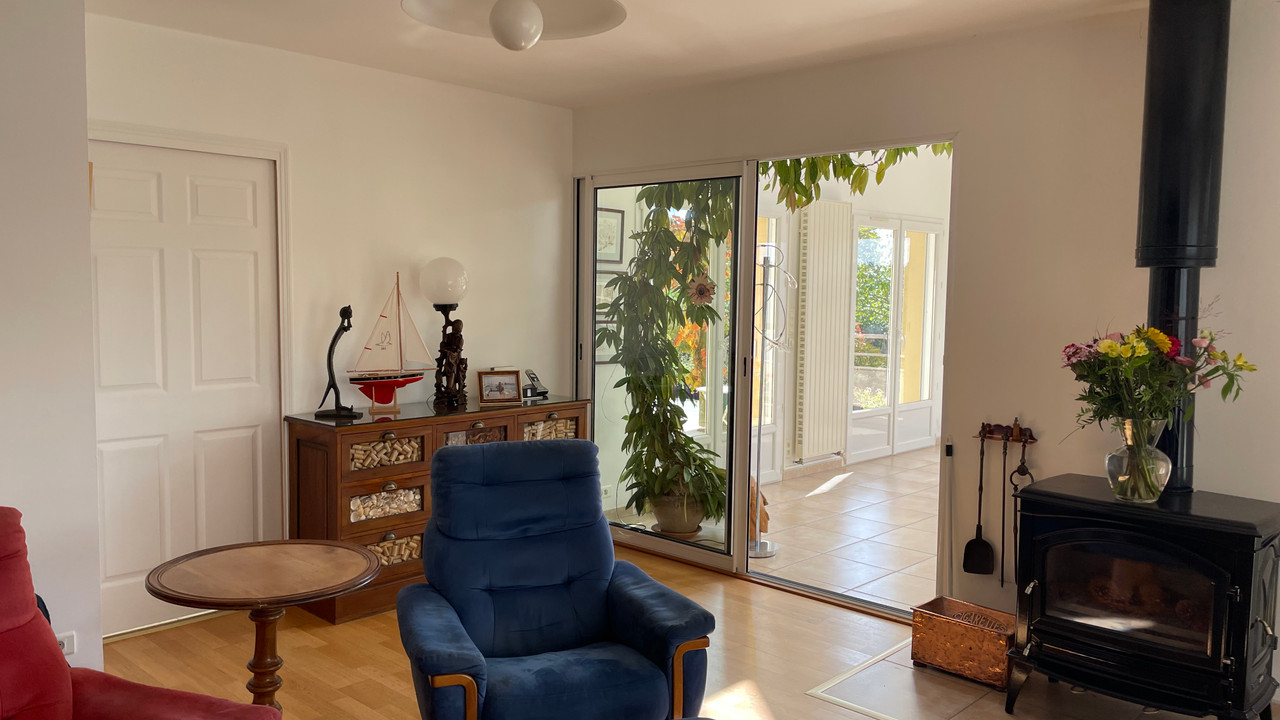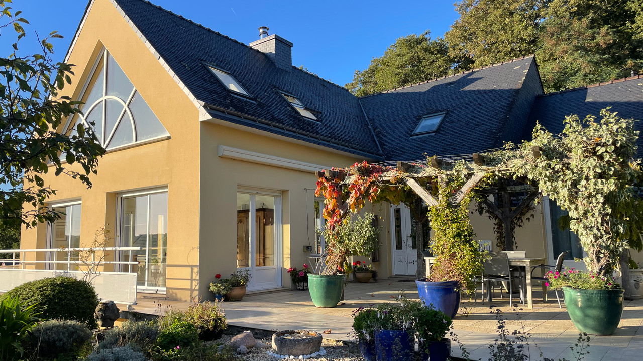 A40285EAM56 - Constructed by present owners in 2005, this modern four- bedroom home combines comfort, efficiency and light-filled design. Its elevated setting offers sweeping views over the Melrand valley, with sunsets enjoyed from wraparound terrace. Generous insulation, a recently replaced condensing gas boiler (1,200L underground tank) and a log burner ensure year-round warmth, while multiple patio doors flood the interiors with natural light. The ground floor includes a striking garden room with vaulted ceiling, lounge, kitchen, shower room with WC, guest WC and two double bedrooms. Upstairs are two further bedrooms, a shower room, mezzanine studio and walk-in attic storage*. The sous-sol provides secure parking for two cars, workshop, utility, storage and WC. Outside, landscaped grounds with powered shutters, terrace awning, greenhouse and 5,000L water recovery system, a practical well maintained property ready to move into.