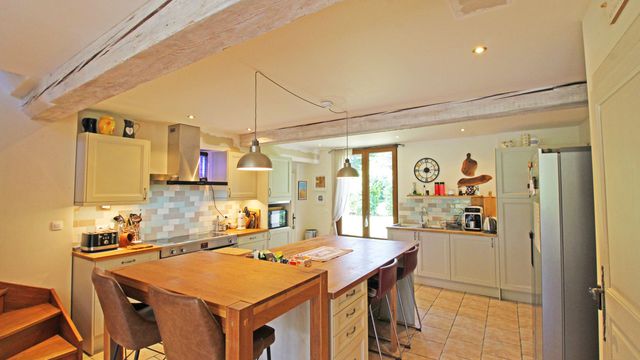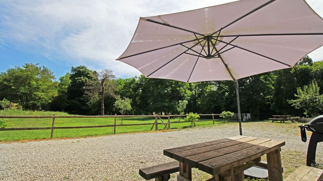 The property sits in over 2 hectares of land, with fruit trees, impressive conifers, and fields. The pool with a stone terrace is the perfect spot to relax, with a covered terrace and bar area, ideal for entertaining.