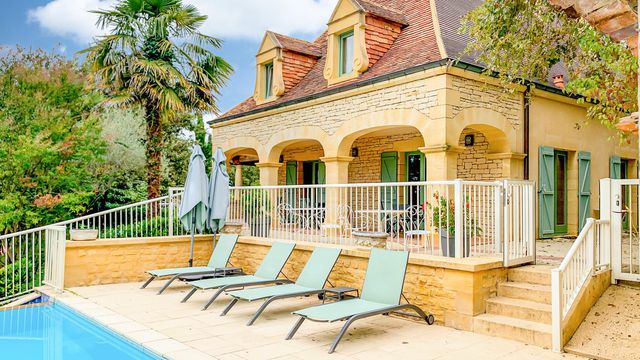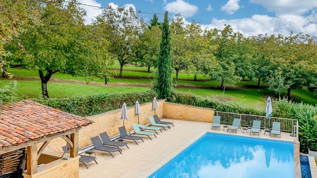 This 500 m2 Périgourdine house, entirely renovated with taste and refinement, benefits from an ideal location, in a peaceful setting just 10 minutes' walk from the medieval town of Sarlat.