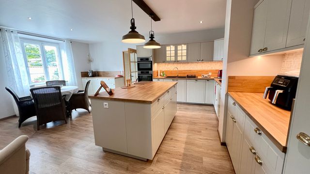 The house features 5 bedrooms, a brand-new fitted kitchen, a large light-filled living room, a dining room, 2 bathrooms, and 2 en suite shower rooms. Outside, it boasts a huge barn, garage, car port, extensive gardens, and its own private woodland—perfect for outdoor living or further development.