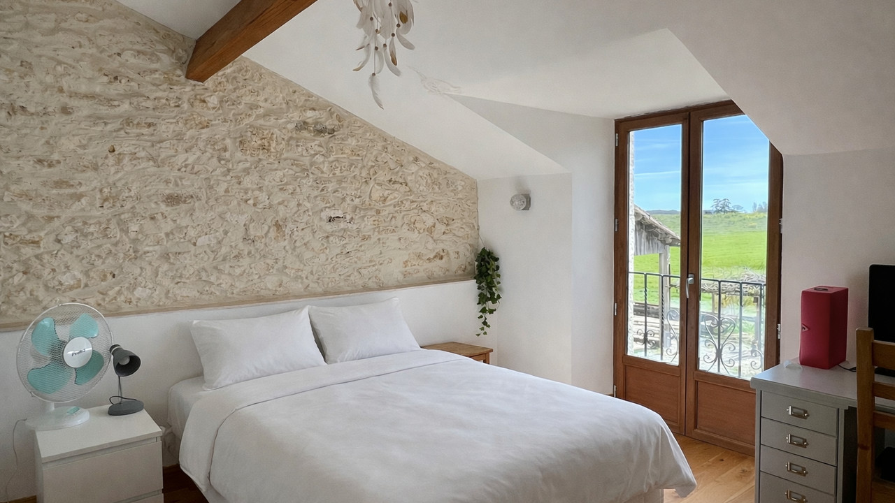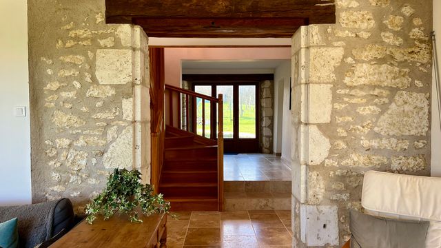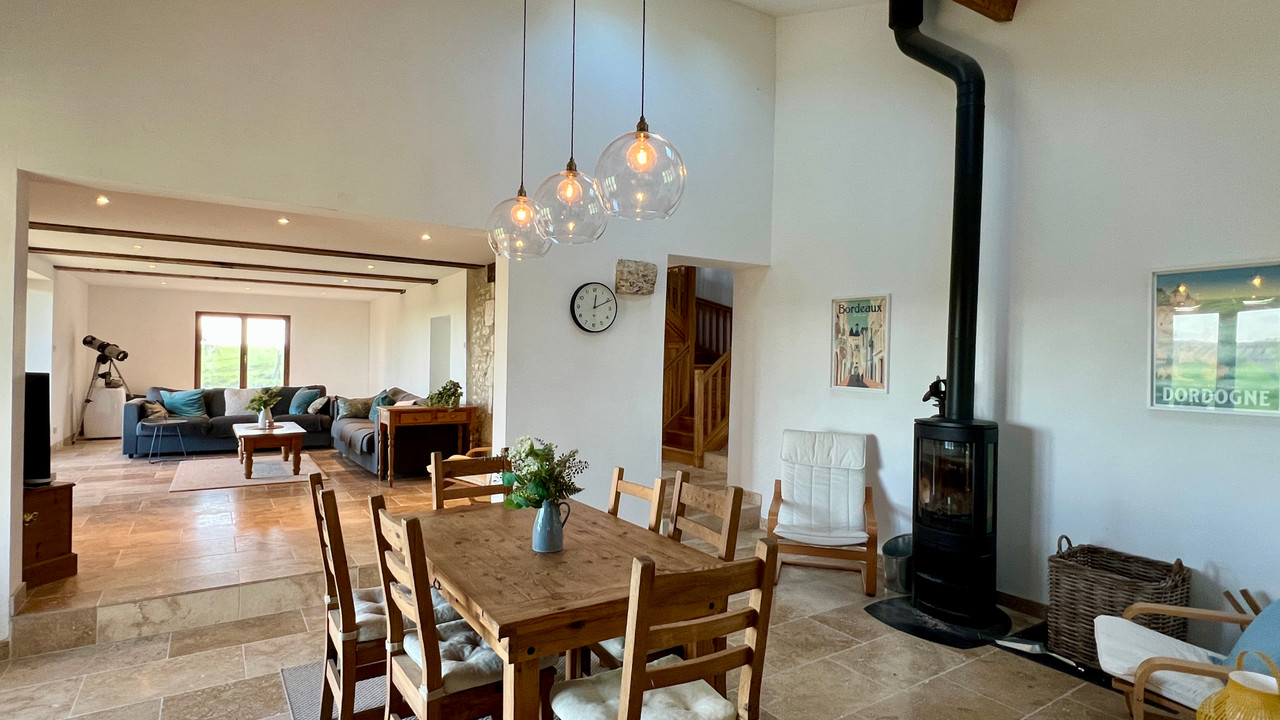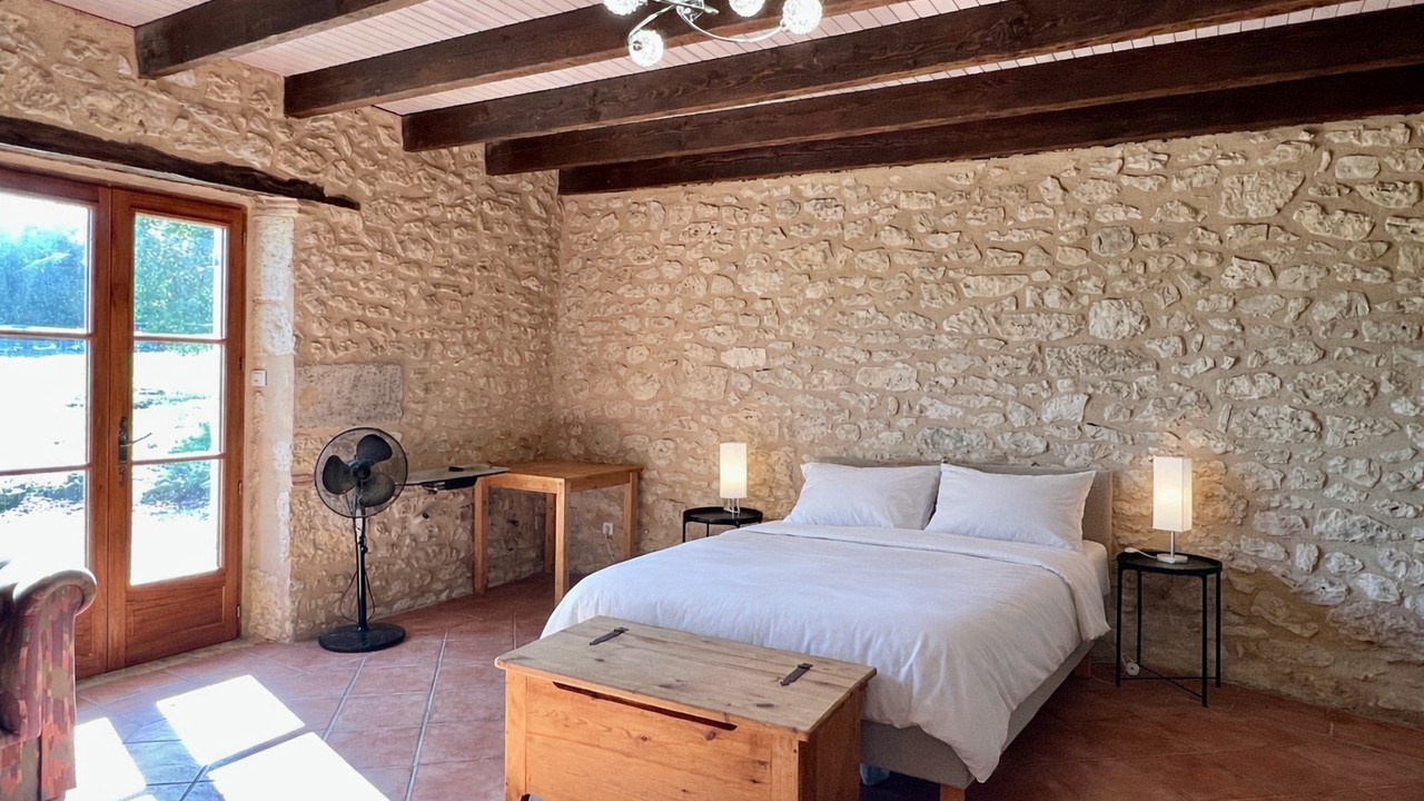 A42933GJP24 - Ideally located between Eymet and Bergerac, this beautifully modernised stone property sits on 7,843 m² (1.9 acres) of land and includes a swimming pool and outbuilding. Full of character and charm, the house features exposed stone walls and beams throughout. The accommodation offers an open-plan kitchen and dining room, a spacious sitting room, and two ground-floor bedrooms, each with its own en suite. Upstairs there are three further bedrooms and two shower rooms. Heating is provided by a heat pump, with underfloor heating in parts of the house. The nearest town with shops and restaurants is just 4.5 km away, while Bergerac and its airport are 15 km away and Eymet is only 11 km from the property.