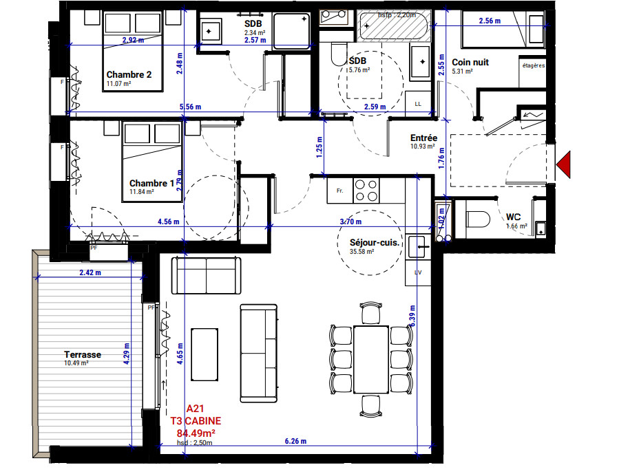 A32209MAA38 - A light and airy 1st floor off plan apartment of 97.48 m2 with 2 bedrooms and an additional cabine bedroom for sale in Alpe d'Huez. This iconic high altitude resort offers an incredible variety of skiing and wonderful summer activities. Year round views that will never get tiring from your lovely sunny terrace.