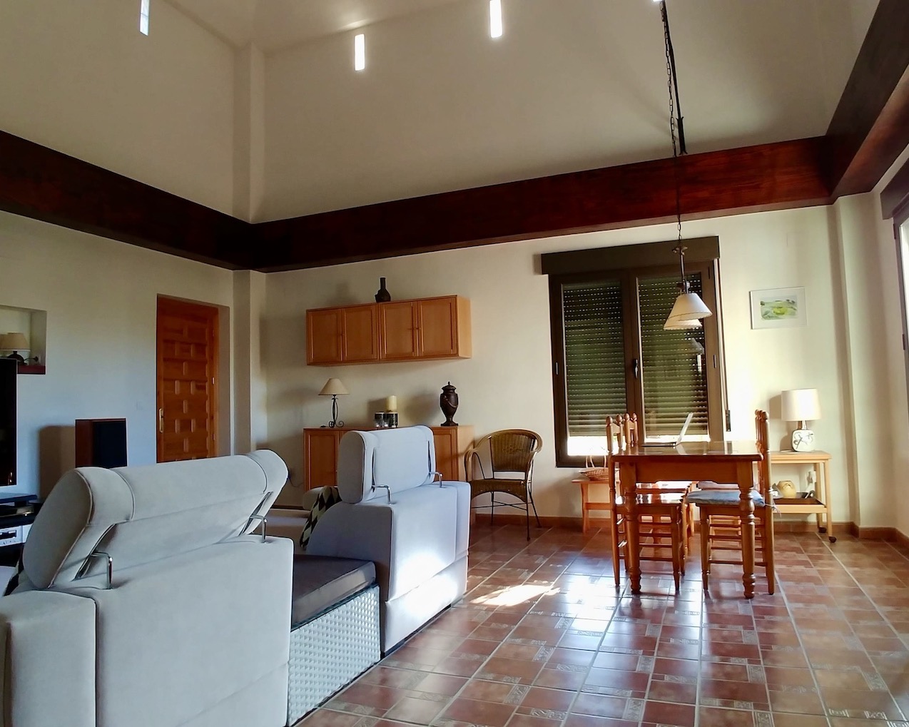 La casa dispone di tre camere da letto, due bagni, un'enorme cucina completamente attrezzata e un ampio soggiorno a doppia altezza con un'ottima acustica. La casa è estremamente ben tenuta con tutte le superfici in ottime condizioni. Il cuore della proprietà è l'imponente soggiorno con un soffitto alto 7 metri e un'ottima acustica. È una stanza molto luminosa con una fantastica vista sulla Sierra Nevada. Una porta a destra conduce a due camere da letto, due bagni con doccia, disimpegno e ingresso. L'ingresso preferenziale alla casa è attraverso una terrazza coperta che conduce a un ampio ripostiglio e alla cucina. Una porta a sinistra conduce a una terza camera da letto arredata dai proprietari come ufficio.