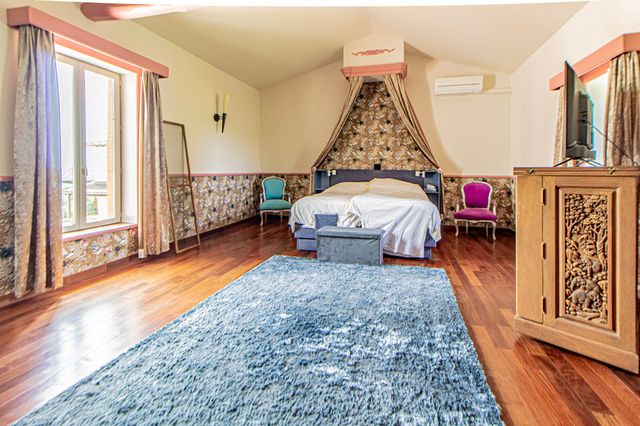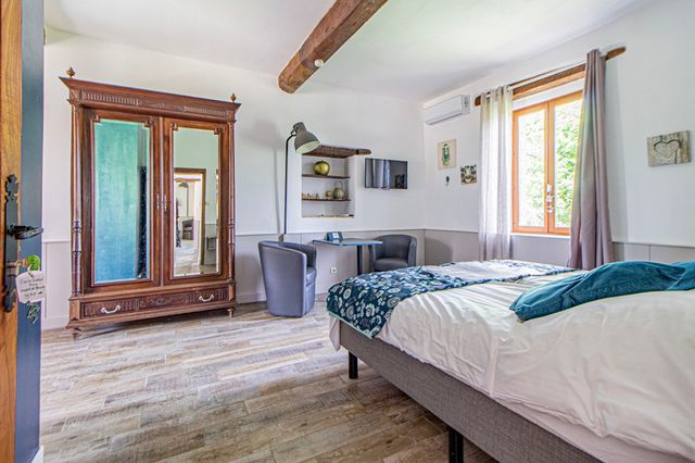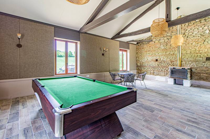 A30395SEF81 - Nestled on a hectare of land, this property combines rural charm and modern comfort with tremendous commercial potential. The owners' residence features a spacious kitchen, a formal dining room, a cozy living room, and an office. Upstairs, the master suite includes a large walk-in closet and a shower room. Another bedroom with potential for private facilities completes the family space. The property offers four gîtes and four guest rooms, each equipped for a comfortable and independent stay. The modern gîtes accommodate up to six people, and the loft gîte has a balcony with countryside views. The guest rooms each have their own shower room and WC. Facilities include a party room, a saltwater pool, a workshop, and a grassy play area. The 24 solar panels ensure eco-friendly hot water production. Currently, the property generates approximately 100,000 euros in annual turnover.