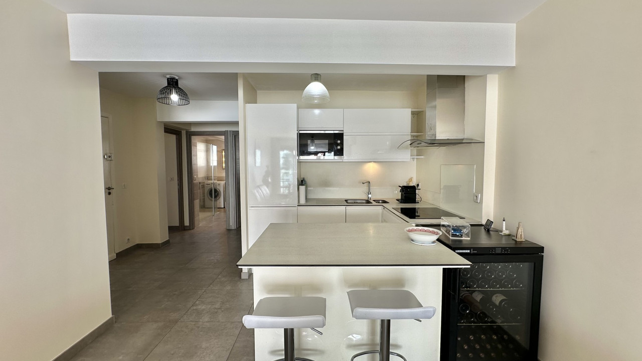 A40491PAK06 - Elegant and fully renovated 2-bedroom apartment of 75 m², featuring a panoramic sea view and direct access to the beach, ideally located right in front of the beach and within walking distance of shops, restaurants, and public transport.