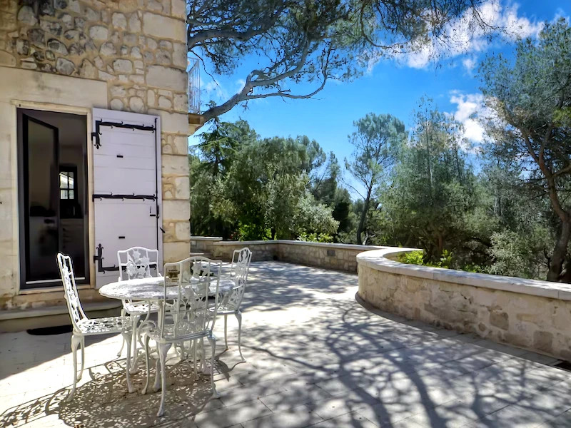 A42066KS30 - Set on a commanding hillside within 1.5 hectares of pine forest, this exceptional stone residence offers privacy, sweeping views, and walking-distance access to Beaucaire's town centre.