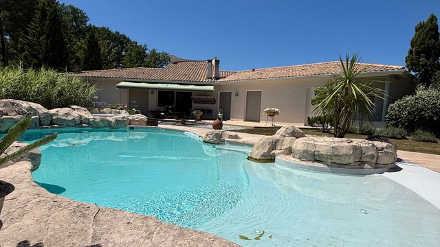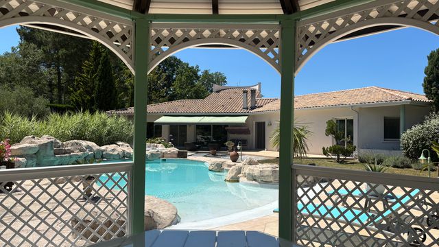 Just 40 minutes from Bordeaux and 5 minutes from the A62 motorway, this exceptional 194 m² contemporary home is nestled in a beautifully landscaped 2,426 m² green setting.