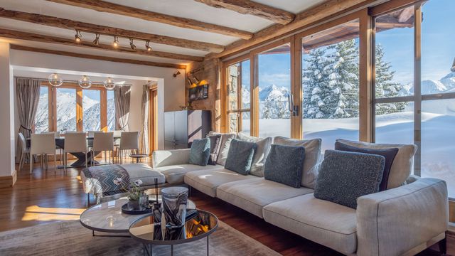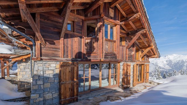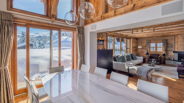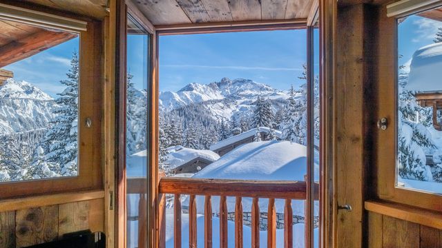 A33821SM73 - This exceptional chalet of 409 m² is located in a private, sought-after setting in Courchevel 1850. Nestled in a small, gated domaine with underground parking, it offers a beautiful and exclusive environment with breathtaking views, particularly from the recently renovated living area.
