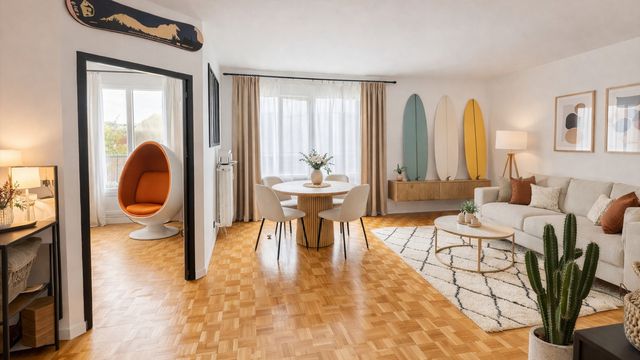 A43854LUM94 - Located in the heart of La Varenne Saint-Hilaire in Saint-Maur-des-Fossés, just steps from the local market square, this fully renovated family apartment offers 89.37 sqm of Carrez living space combining comfort, brightness and functionality. Situated on the 4th floor with elevator in a well-maintained building, the property benefits from dual exposure and open views with no overlooking. The optimized layout includes an entrance with storage, a bright living room with balcony access, a fully equipped kitchen with laundry area and access to a second balcony, two spacious bedrooms with built-in storage, a dedicated office space and an additional sleeping area. Two shower rooms with toilets complete the property. A cellar is included, with the possibility to purchase a closed garage box.