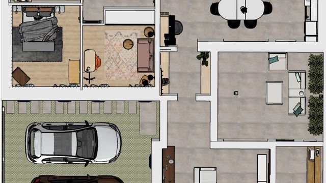 The outdoor courtyard offers the possibility of creating a cozy terrace while maintaining two parking spaces. Additionally, an independent 7 m² cellar, accessible from the outside, can be integrated into your project.