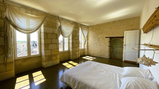 A28736MGD33 - Rich in history, this former harbour master's property has a dominating position overlooking the port of Bourg sur Gironde. Recently renovated the property comprises large entrance hall, open plan living area with kitchen, leading to the enclosed garden, 2 large rooms & 2 bathrooms downstairs plus 3 bedrooms, a further room & 2 bathrooms upstairs. Modern renovation married with the character and history of the 18th century property. Ideal for a large family home or offices Close to the centre of the ancient village of Bourg and to the port with its restaurants, outdoor pool, boat moorings etc.