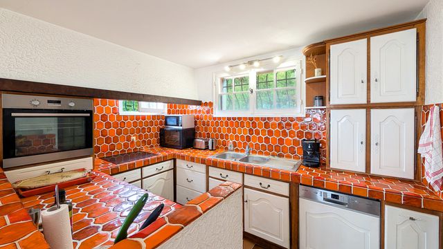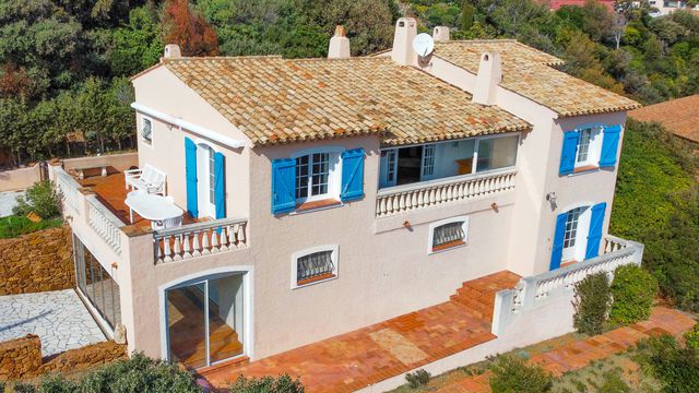 A43173VAP83 - Set in a unique frontline position in Anthéor, between the red rocks of the Estérel Massif and the Mediterranean Sea, this 215 m² villa enjoys breathtaking 180° panoramic sea views with complete privacy. Built over two levels on a 910 m² plot, the upper floor offers bright, open living spaces with cathedral ceiling, fireplace, loggia and terraces — and all rooms on this level enjoy sea views. The garden level features a 35 m² independent apartment, a studio, and a large adaptable space, complemented by multiple shower rooms and kitchenettes — offering excellent B&B or rental potential in this highly touristic area. The garden allows for pool installation. Vendor financing available: €790,000 initial payment with 0% interest over 8 years. Information about risks to which this property is exposed is available on the Géorisques website : https://www.georisques.gouv.fr