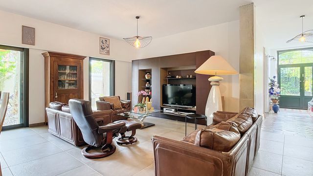 A39816JAV81 - Step into a world of timeless elegance with this fully renovated 1900 Maison de Maître in the heart of Lézignan-Corbières. Spanning 440 m² across 14 rooms, including 9 bedrooms with en-suite bathrooms, this turnkey property combines historic charm with modern comfort: soaring ceilings, stained-glass windows, original and wooden floors, exposed beams, double glazing, air conditioning, and high-efficiency heating.
