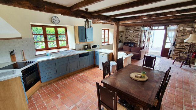 Gîte complex & heated pool in village centre. 4 houses - 12 bedrooms, 8 bathrooms. Beach 30 min
