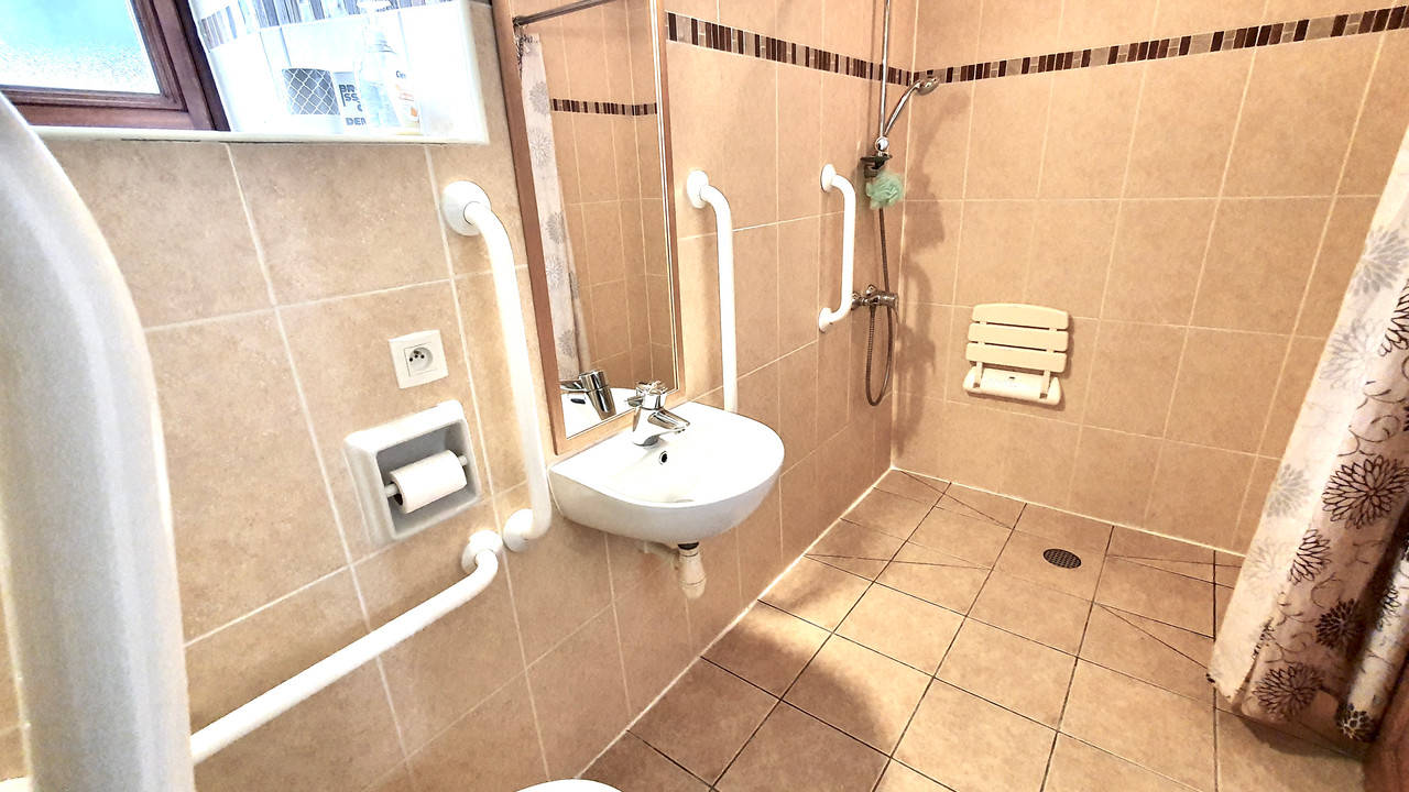 Bathroom with WC & sink, heated towel rail & bath with overhead shower with folding screen 5.3 m²
