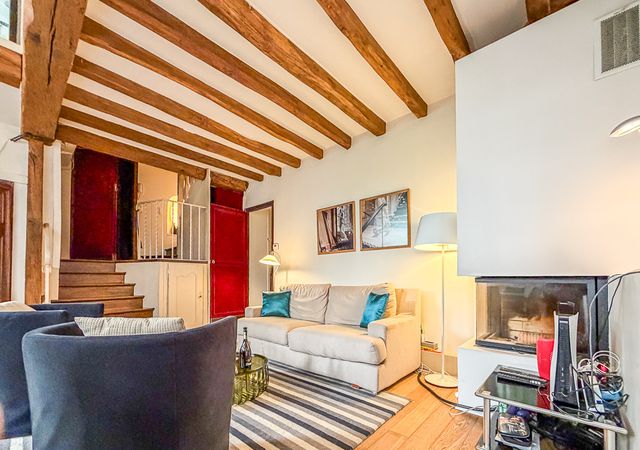 Île Saint-Louis, charming character flat, 2–3 rooms, 77 sqm, duplex with mezzanine, bright and quiet