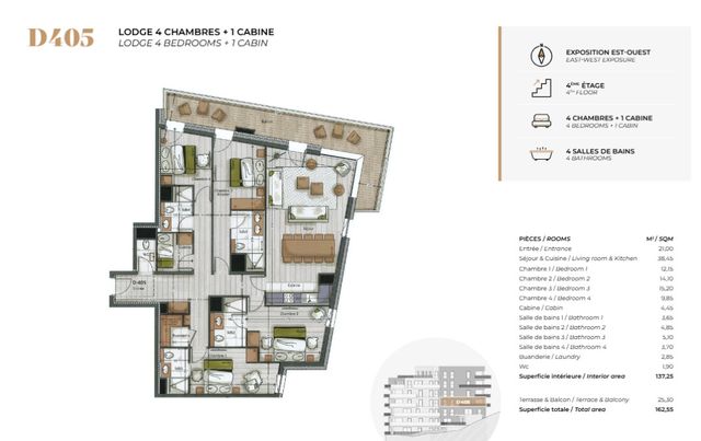This 4 bedroom plus cabine - sleeping upto 10 people offers 162 m² of luxurious and spacious modern living and hence has a strong rental potential.
