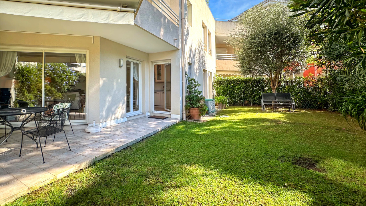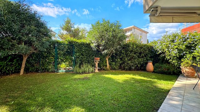 Juan-les-Pins – Beautiful 2-bedroom garden apartment with parking, garage and cellar.