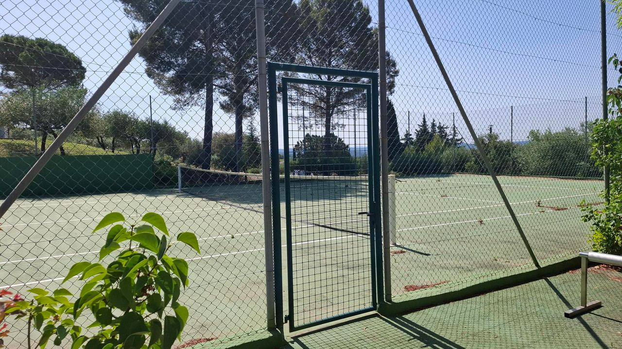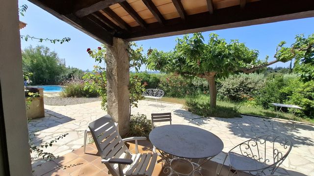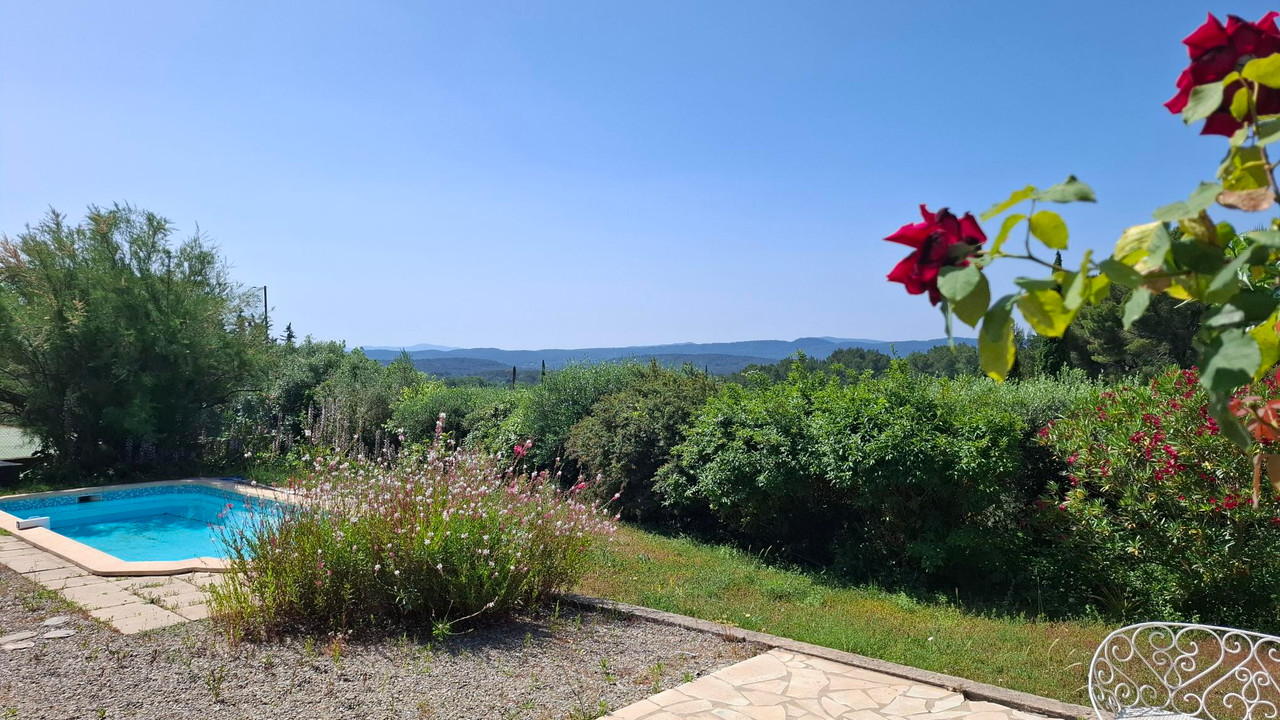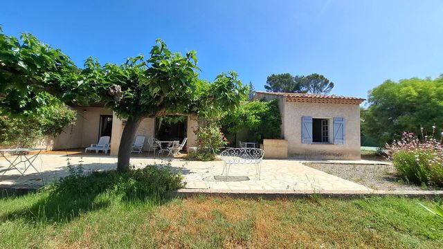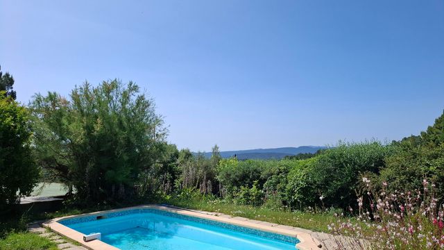 A37039GWI83 - House for sale in the famous village of Cotignac in Provence. Close to the village and all amenities, lovely Provençal house set in the heart of superb gardens of more than 2 500 sqm fenced, planted with olives trees and Mediterranean trees. In dominant position it offers a unique panoramic view of the surrounding countryside. Privacy, quiet, perfect exposition to the South, the house is light and in good condition. It offers comfortable volumes with entrance, spacious living / dining room with chimney. This light room opens on to the south terrace, kitchen with dining space, 3 comfortable bedrooms, bathroom, shower room, toilet. Big garage, little cabanon in stones for garden tools, tennis court and swimming pool.