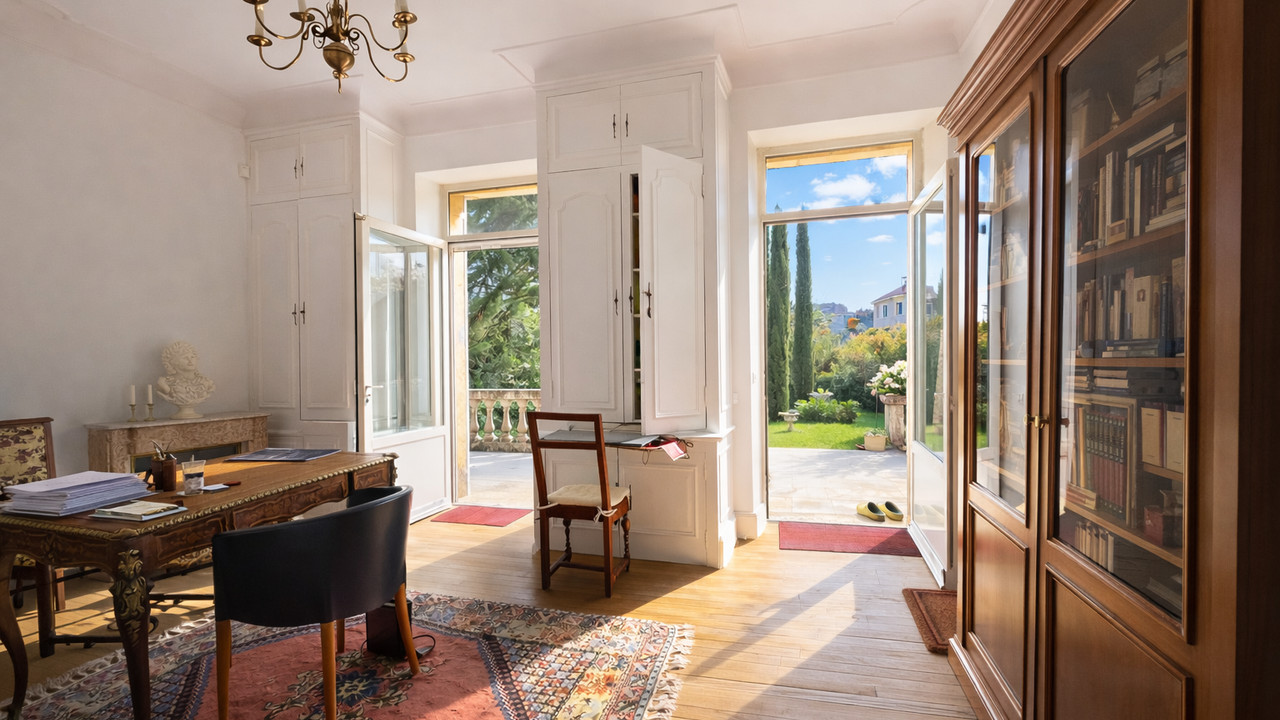 The second floor offers a spacious studio or bedroom, an additional bedroom & a bathroom. A laundry room, cellar & two garages complete this rare & prestigious property, ideal as a luxury residence or second home.