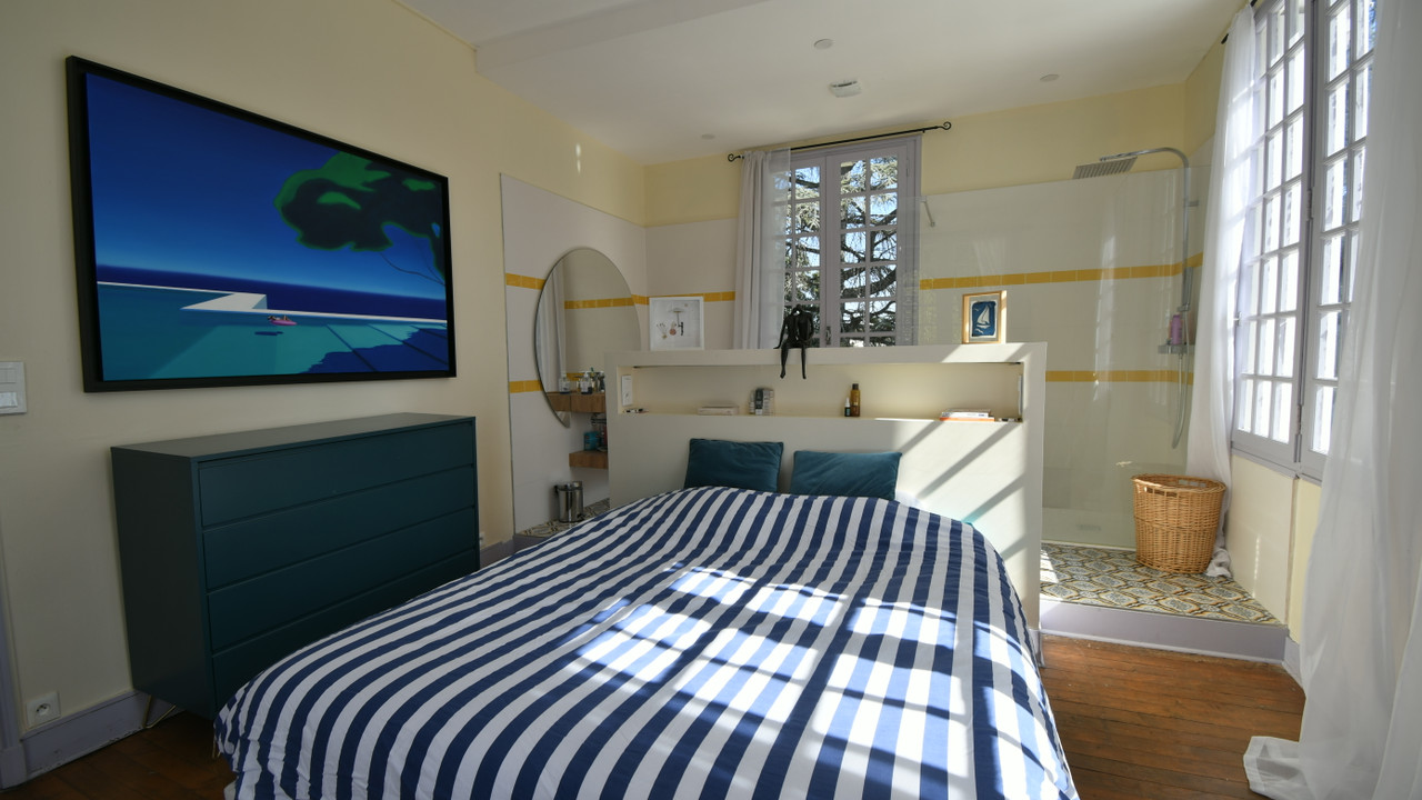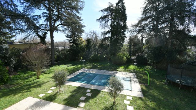 Concrete manor , vast ground floor (living room, veranda/pool), master suite (terrace), 5 beds, office, baths/showers, convertible mezzanine.
