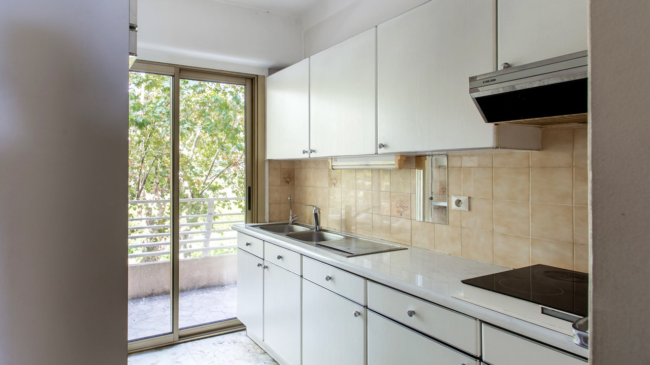 A24614OVI06 - Menton - Promenade du soleil. On the seafront overlooking the Mediterranean from Italy to Roquebrune Cap Martin. A very bright 2 bedrooms apartment. Entrance, living room with terrace, 2 bedrooms, kitchen, bathroom, toilets, balcony. The apartment will need a refurbishment to become the perfect holiday home on the French riviera. Sold with a cellar. Private parking space available for 25 000€.