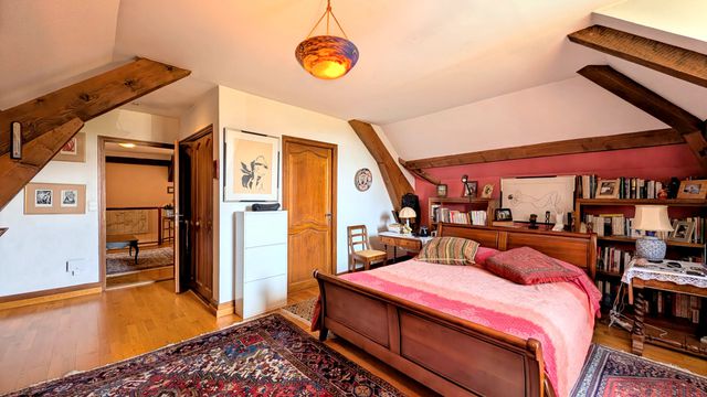 Charming 4-bedroom house in a great location: 2 minutes walk to Lake Geneva and the historic village centre. Ideal for Frontaliers with quick road (30 min), bus, and year-round ferry connections to Nyon/Switzerland. Includes a sunny lounge with access to a wrap-around garden, heated pool (heat pump), terraces, and a double garage. The house features a master bedroom with an ensuite and large dressing room, plus a flexible loft bedroom with potential for a 3rd bathroom. Enjoy lake activities, country walks, and skiing just 45 minutes away. A practical home for French/Swiss living.