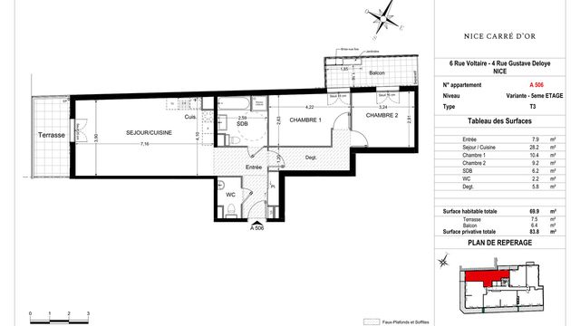 This 2 bedroom apartment is set on the top floor, it offer an entrance, the living room with open fully fitted kitchen opening unto the balcony with West exposure, 2 bedrooms opening unto a balcony, shower room, toilets, storage.