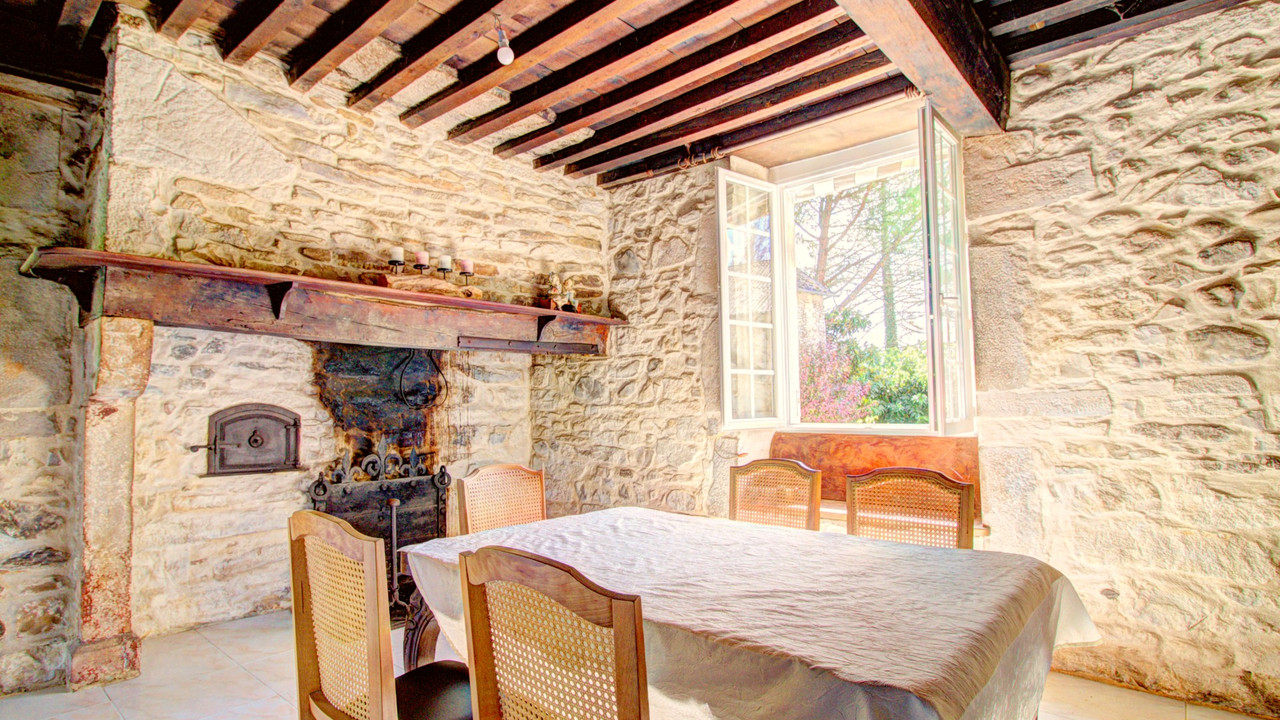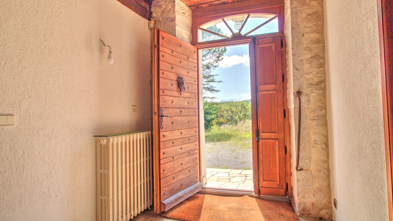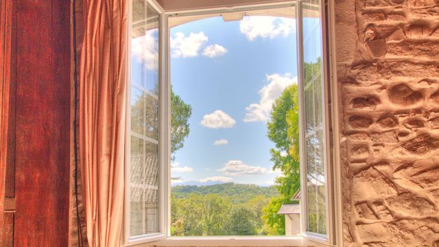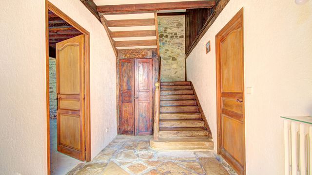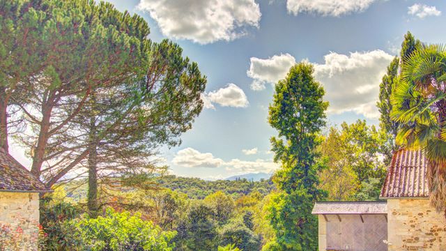 Beyond the courtyard, the gently sloping land extends over 5 hectares, which includes forest, meadowland and a spring-fed pond. On the horizon, the panoramic views of the Pyrénées are stunning!