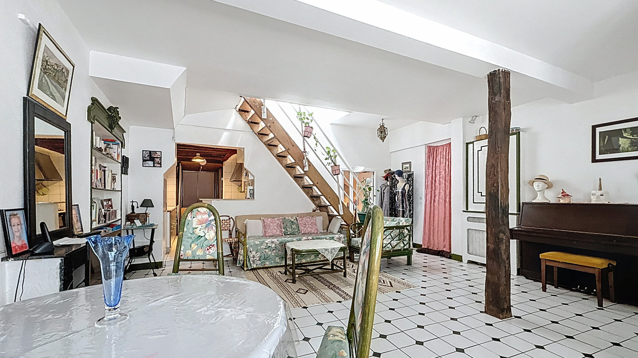 A41390LUM75 - In the heart of the 10th arrondissement, just steps from Marché Saint-Quentin, this artist's duplex combines the charm of a traditional Parisian workshop with the tranquillity of a quiet, pedestrian-like street. Accessible directly from the Cour de la Ferme Saint-Lazare, the house is arranged over two levels: On the ground floor, an entrance leads to a spacious living area, extended by a semi-open kitchen and a studio or office space (which could be converted into a shower room). Upstairs, a staircase beneath a glass roof leads to two bedrooms, a bathroom with WC, and a storage room offering the potential to create a second WC. Some light refurbishment would make it possible to maximise the full potential of this unique property, officially designated as a commercial unit with residential use — perfect for an artist's studio, a main home, or a furnished short-term rental investment. Information about risks to which this property is exposed is available on the Géorisques website : https://www.georisques.gouv.fr