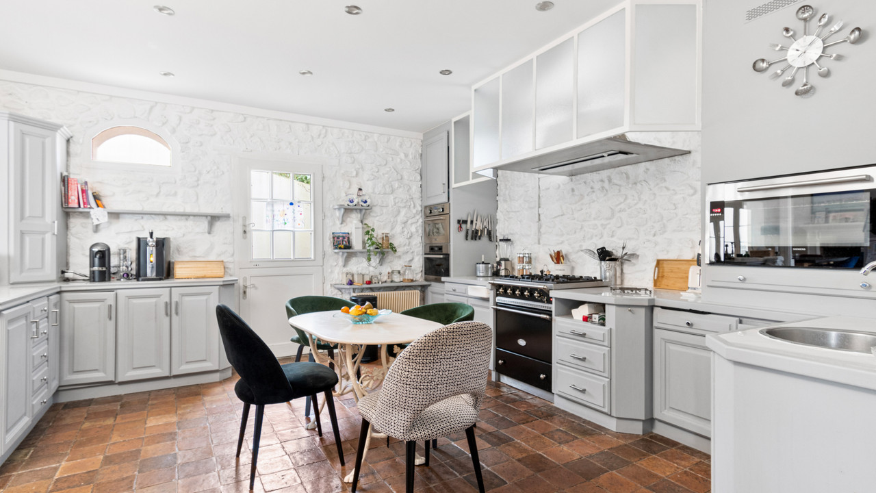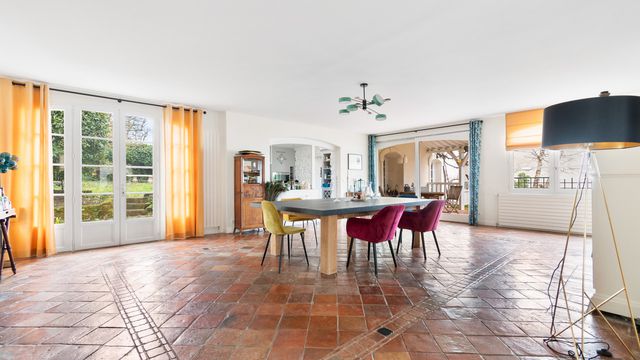 A38244VID78 - Noisy-le-Roi – In a beautiful and peaceful neighborhood, LEGGETT International is proud to present this magnificent fully renovated farmhouse, offering nearly 900 m² of living space on a landscaped and enclosed plot of 1,376 m². The main house features a turret entrance, heated indoor pool, cathedral-ceiling living room with monumental fireplace, billiard area, dining room, fully equipped family kitchen, 5 bedrooms including a master suite, 4 bathrooms, dressing room, finished basement with games room, sauna, double garage, and several outdoor parking spaces. Around the paved courtyard are two independent apartments (55 m² and 50 m²), and 52 m² of office space that can be adapted to your needs. A rare property combining charm, generous volumes, and high-end features, perfect for a large family, professional activity, or mixed use. A unique opportunity not to be missed.