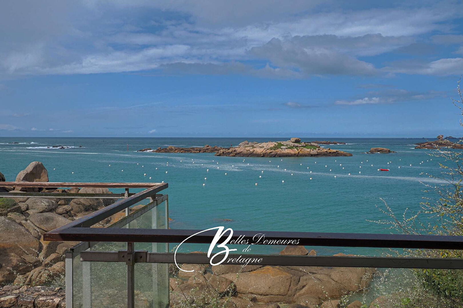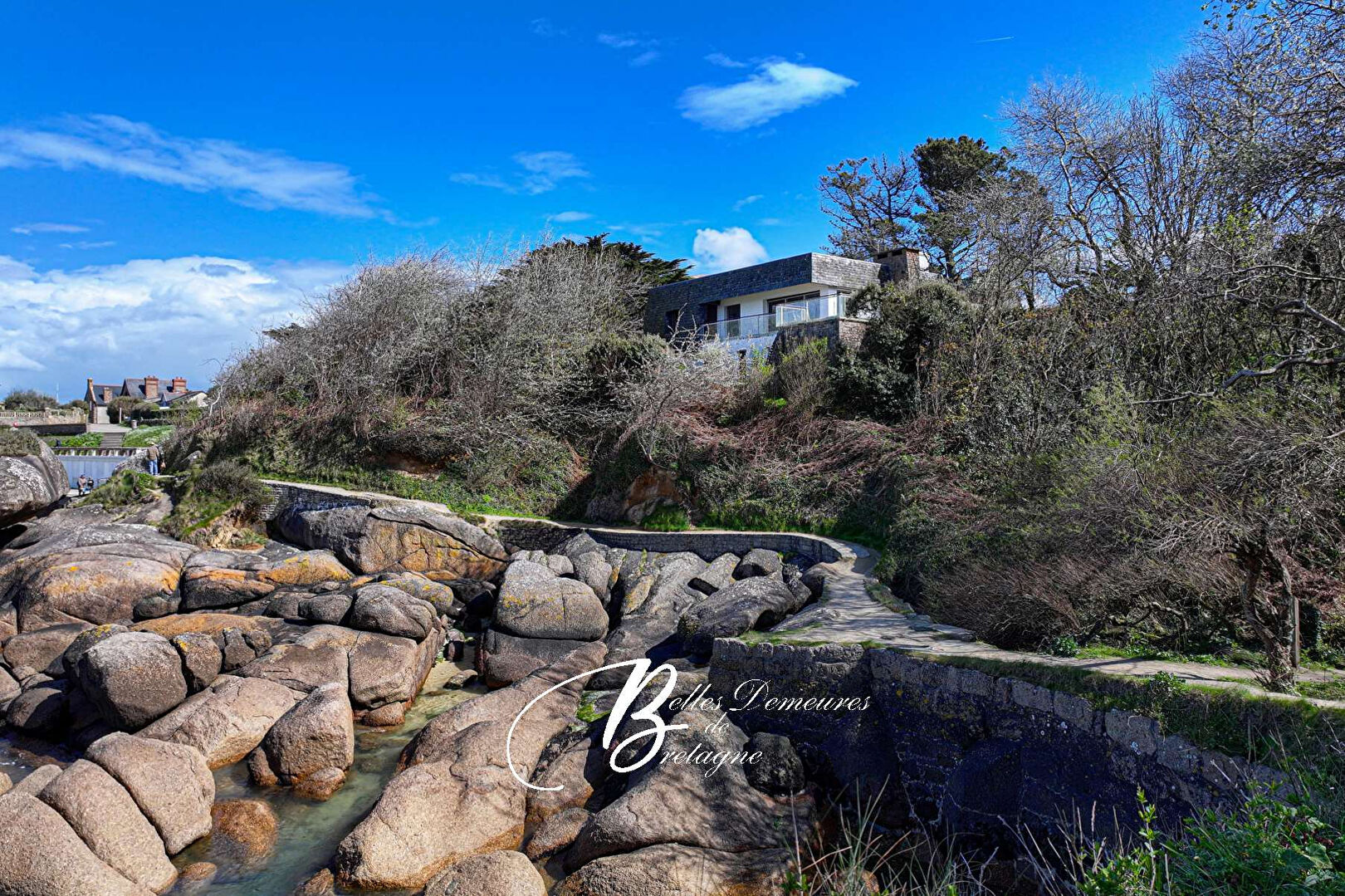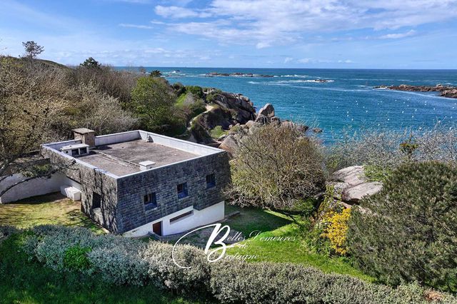 Sur l'un des sites les plus emblématiques de la Côte de Granit Rose, cette remarquable maison d'architecte des années 70 s'inscrit dans un environnement naturel d'une rare beauté, en position dominante face à la mer.
