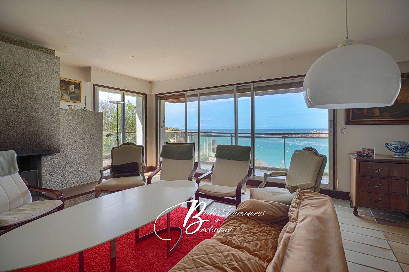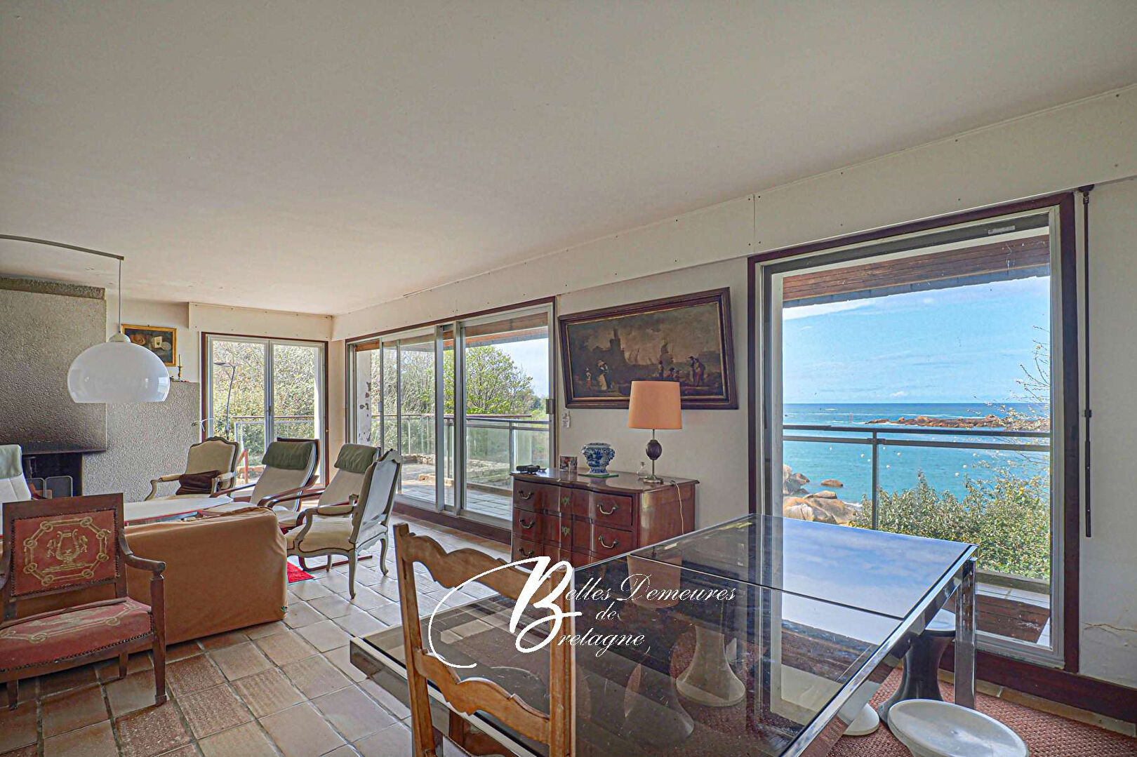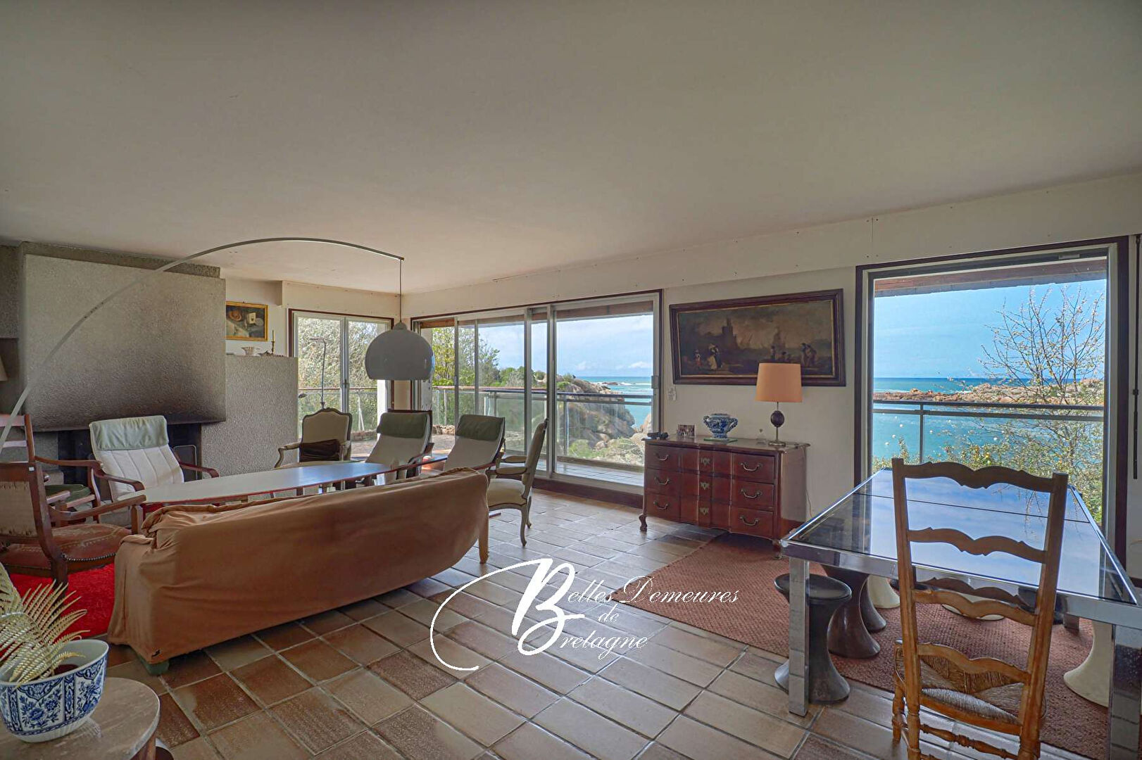 Sur l'un des sites les plus emblématiques de la Côte de Granit Rose, cette remarquable maison d'architecte des années 70 s'inscrit dans un environnement naturel d'une rare beauté, en position dominante face à la mer.