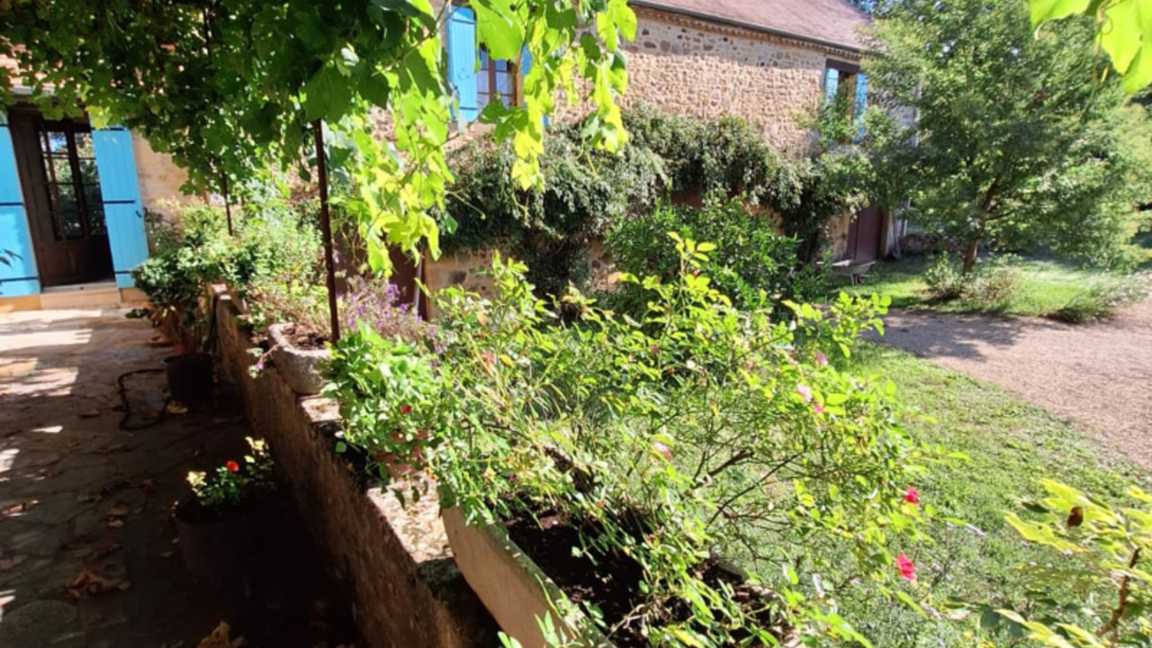A landscaped and flowered garden, a pool house, and a natural swimming pool complete this beautiful property.
