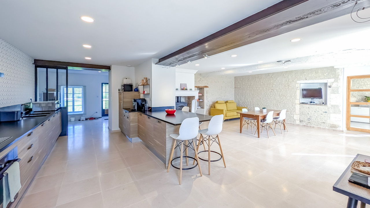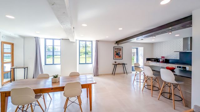 A36145ELM16 - Discover this exceptional residence: a 17th-century property of which only the original walls have been preserved. This complete reconstruction now offers contemporary living comfort combined with remarkable energy efficiency. Just 5 minutes from Barbezieux, 25 minutes from Jonzac and Angoulême and 50mn from Bordeaux.