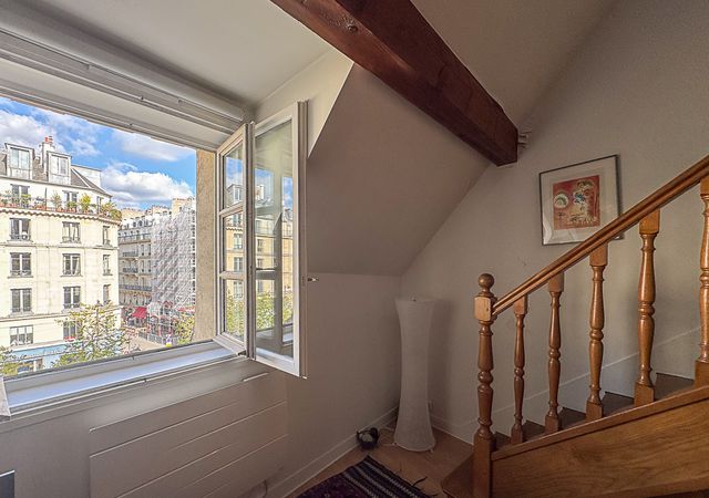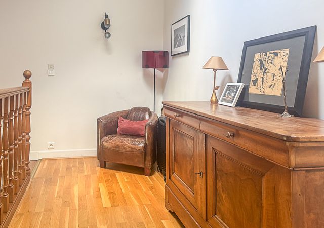 Au premier niveau, vous trouverez un séjour spacieux avec poutres apparentes, une cuisine ouverte équipée, un espace repas et une salle de bain. À l'étage, une chambre avec rangements intégrés, ce bien éclairé par deux velux avec volet électrique. Calme et sans vis-à-vis grâce à son emplacement en hauteur. Idéal pour les amateurs de l'architecture parisienne et ceux recherchant un pied-à-terre au cœur de la capitale. À proximité immédiate des commerces, restaurants et transports en commun (métro Saint-Paul).