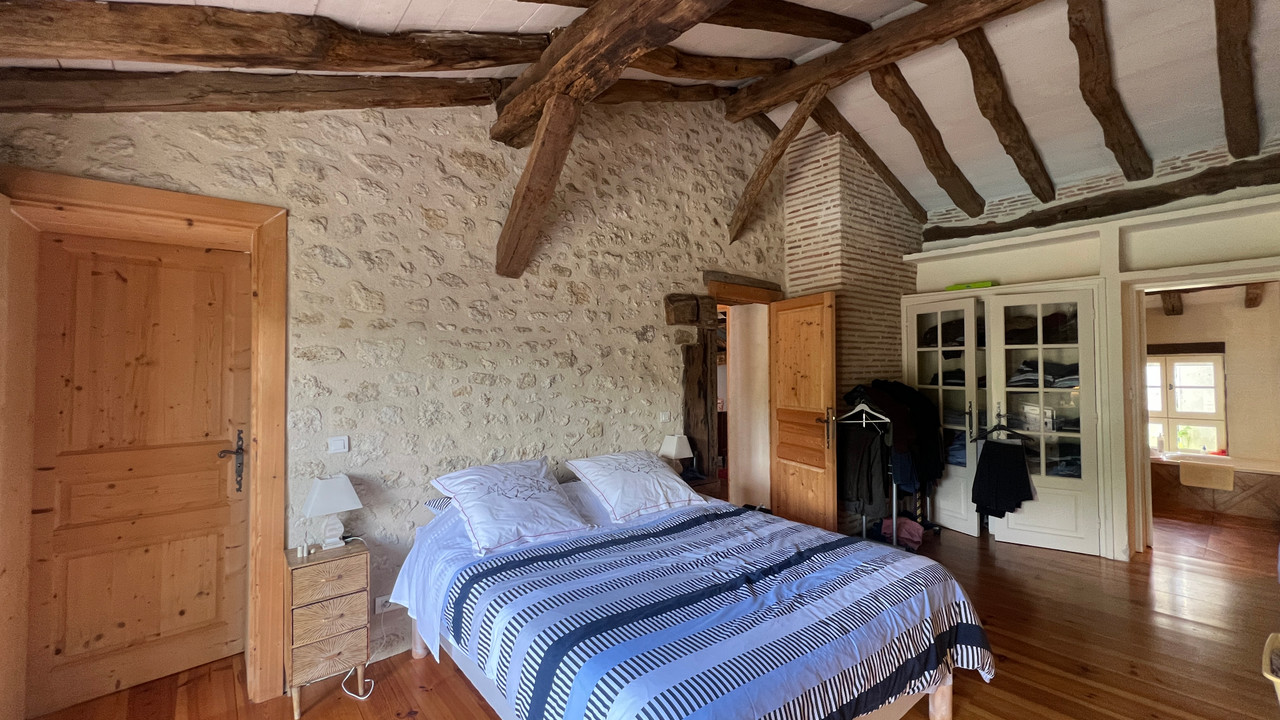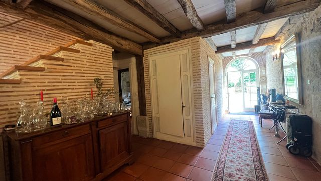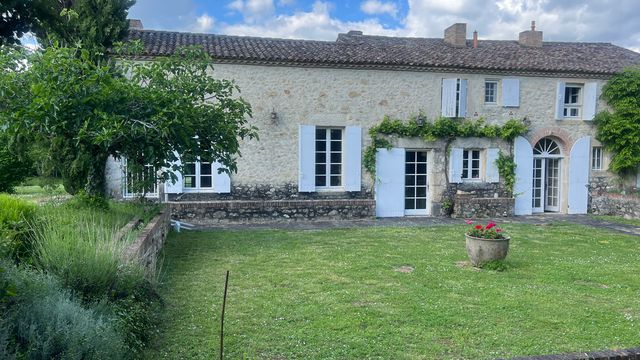 A37385VGR33 - Stunning stone house for sale near Bergerac, Dordogne, Southwest France – perfect for international buyers seeking an elegant country home. This beautifully renovated property features 7 spacious en-suite bedrooms, including a master suite with fireplace and balcony access, ideal for families or boutique B&B use. Enjoy a vast 75m² lounge with floor-to-ceiling windows overlooking large, landscaped gardens and a sparkling swimming pool. The well-equipped 23m² kitchen opens onto a generous salon, ideal for entertaining. Throughout the home, a mix of wooden and tiled floors enhances the warm, authentic character. Set in a peaceful location with easy access to Bergerac airport and local amenities, this home offers the perfect blend of traditional charm and modern comfort for those relocating or investing in Southwest France.