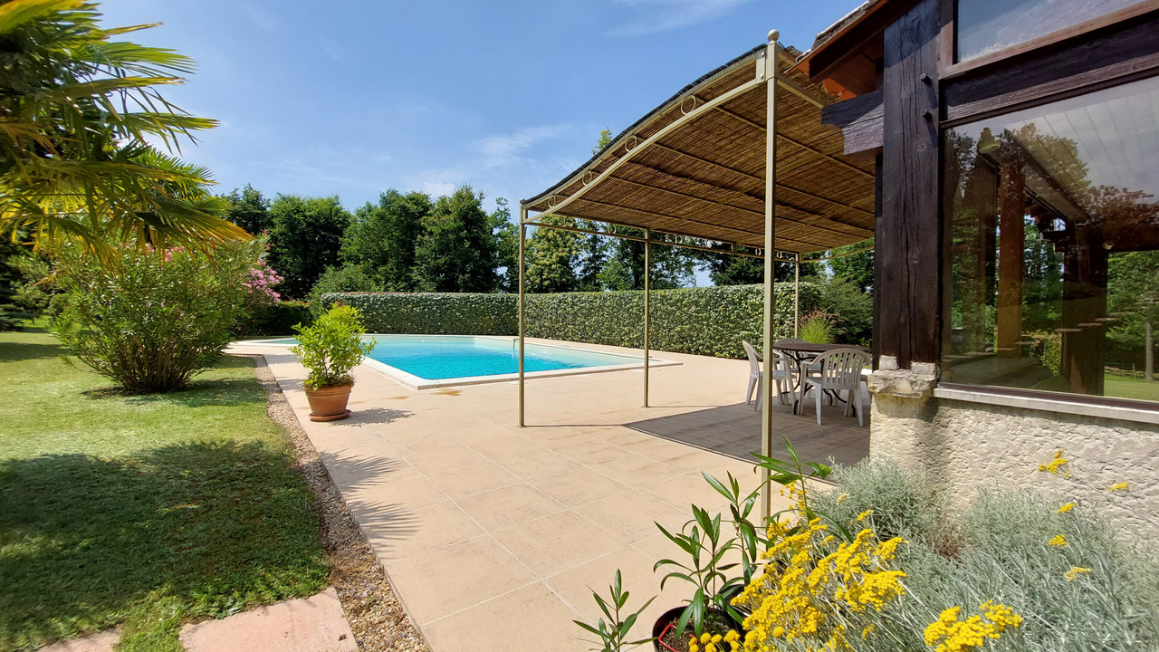 A28648NGA16 - Charming property close to amenities and the countryside, offering great spaces. Large living room, kitchen, 7 bedrooms, 2 bathrooms, attached garage, a basement with room, terraces, swimming pool and pretty landscaped garden. Close to DIRAC amenities. 10 km from Angoulême city center.