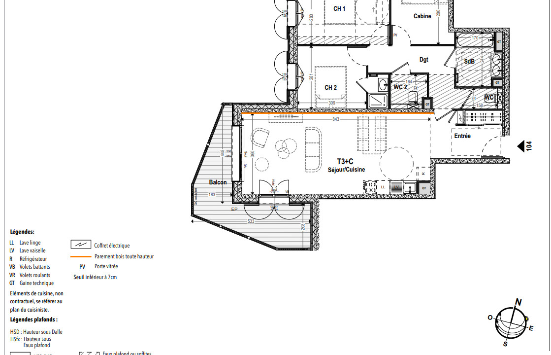 A36045DMD73 - Located in a quiet yet central location Pralognan la Vanoise, this beautiful, new build 81m2 apartment with spacious balcony of 14m2 consists of: Entrance hall leading into the bright, open concept kitchen - living room facing south west onto the balcony.