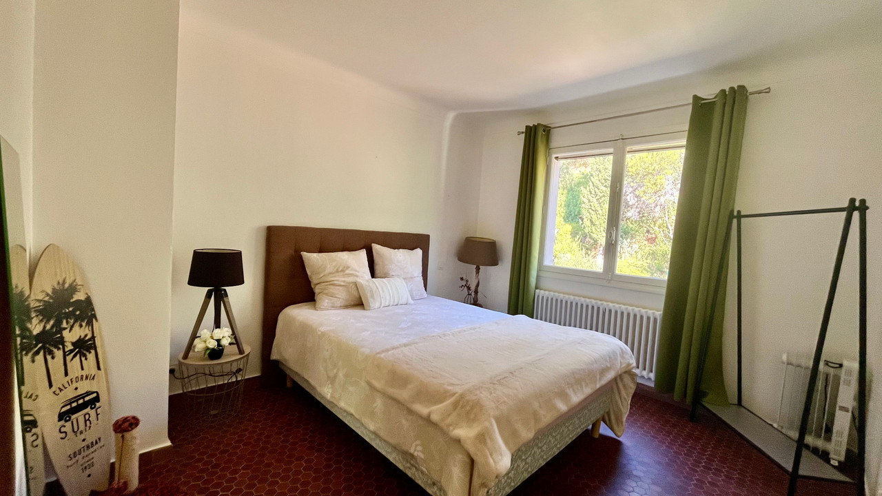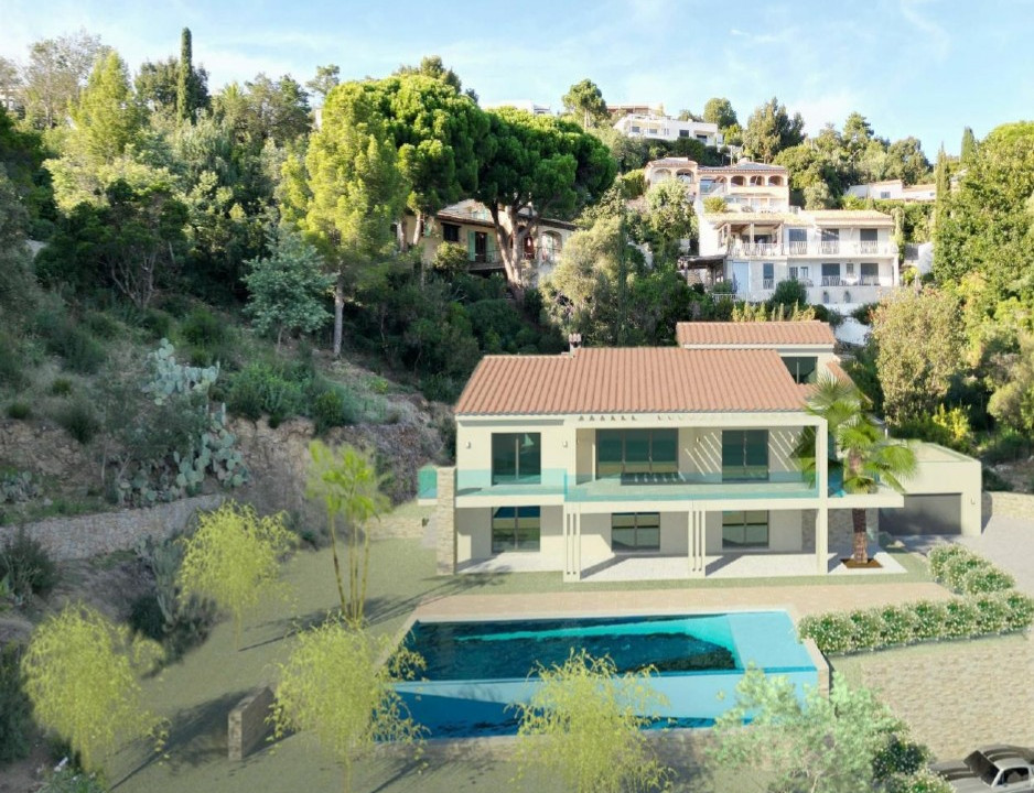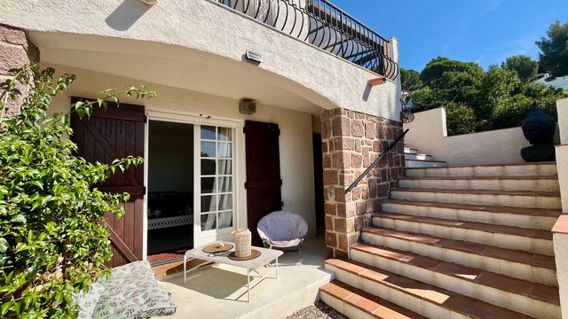 A40168NEM83 - Nestled in a lush green setting in Les Issambres, this 220 m² villa captivates with its authenticity and panoramic sea views. Spread over two floors above the garden level and set on a beautifully landscaped 1,570 m² south-facing plot, it offers generous volumes flooded with natural light. The 60 m² dual-aspect living room opens onto a large sea-facing terrace, while the separate kitchen also benefits from direct outdoor access. The property features 7 bedrooms, including 4 on the main level, complemented by several bathrooms and shower rooms. On the garden level, a self-contained 40 m² apartment provides ideal accommodation for guests or rental purposes. The private, tree-lined garden creates a serene atmosphere perfect for relaxation. A pending building permit includes plans for a swimming pool and the modernisation of the villa, further enhancing the potential of this rare and exclusive property on the Côte d'Azur.