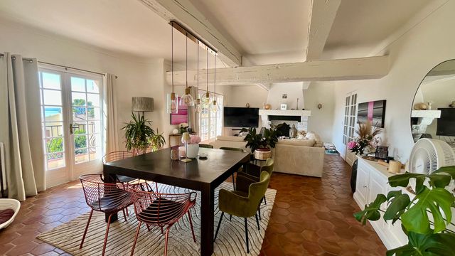 A40168NEM83 - Nestled in a lush green setting in Les Issambres, this 220 m² villa captivates with its authenticity and panoramic sea views. Spread over two floors above the garden level and set on a beautifully landscaped 1,570 m² south-facing plot, it offers generous volumes flooded with natural light. The 60 m² dual-aspect living room opens onto a large sea-facing terrace, while the separate kitchen also benefits from direct outdoor access. The property features 7 bedrooms, including 4 on the main level, complemented by several bathrooms and shower rooms. On the garden level, a self-contained 40 m² apartment provides ideal accommodation for guests or rental purposes. The private, tree-lined garden creates a serene atmosphere perfect for relaxation. A pending building permit includes plans for a swimming pool and the modernisation of the villa, further enhancing the potential of this rare and exclusive property on the Côte d'Azur.
