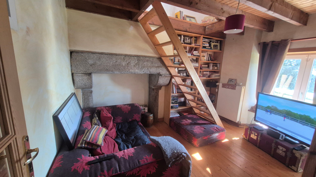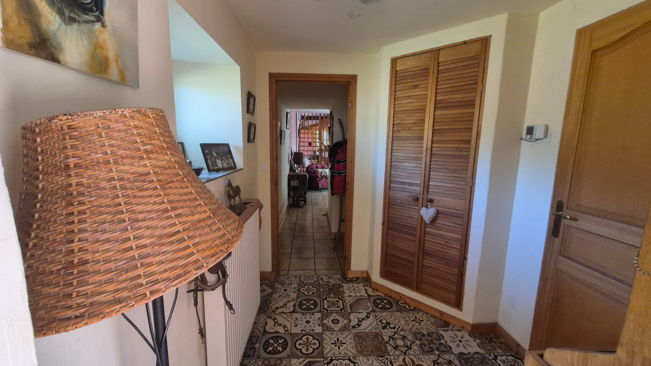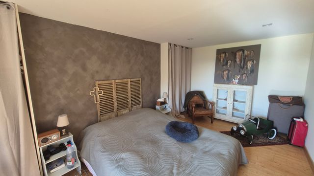 The main house of 150 m², facing due south, combines comfort and character with a cathedral-style fitted kitchen, large living room with monumental fireplace, five bedrooms and two bathrooms.