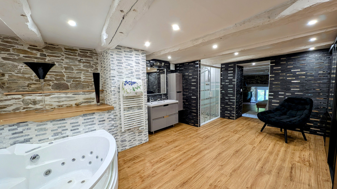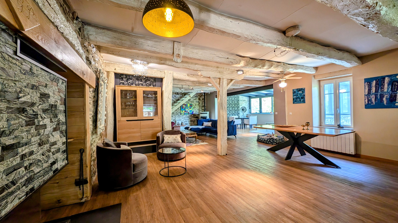 The house offers 225m2 of living space, with the added bonus of a barn, cellars, garage and workshops, all set in 1.2 hectares of land including an orchard, rock gardens, flower beds, paths, ornamental pond, relaxation areas, barbecue... A paradise for the senses!