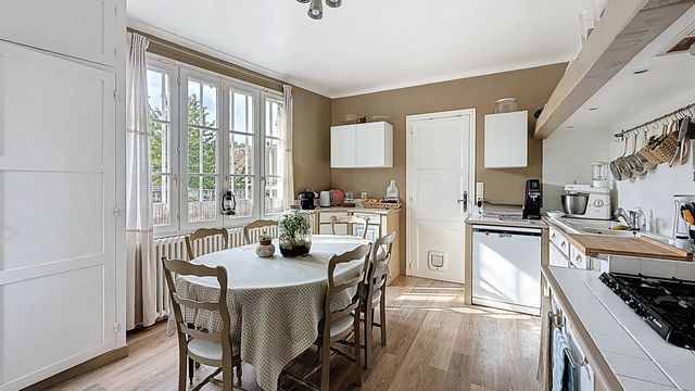 A40444LUM95 - Located in the Parc Naturel Régional du Vexin Français, just 45 minutes from Paris, this historic 17th-century property offers a true retreat in the heart of nature. The main house, with a total surface of 372 m² (of which 266 m² are habitable), impresses with its generous volumes and authentic character. The landscaped and wooded estate of nearly 5,000 m² also includes four independent dwellings measuring 70 m² (2 bedrooms), 63 m² (2 bedrooms), 60 m² (1 bedroom) and 35 m² (studio) — perfect for hosting guests, creating holiday rentals or developing a B&B activity. Three houses are currently rented, generating €2,700 per month (one recent lease, with room for adjustment). A pool surrounded by greenery, two large covered areas for eight vehicles, a pool house, fully enclosed grounds, converted boxes used as cellars and storage, and a chicken coop complete this harmonious ensemble.