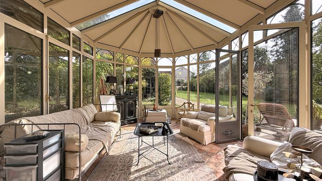 A43314LUM95 - Located in the Parc Naturel Régional du Vexin Français, just 45 minutes from Paris, this historic 17th-century property offers a true retreat in the heart of nature. The main house, with a total surface of 372 m² (of which 266 m² are habitable), impresses with its generous volumes and authentic character. The landscaped and wooded estate of nearly 5,000 m² also includes four independent dwellings measuring 70 m² (2 bedrooms), 63 m² (2 bedrooms), 60 m² (1 bedroom) and 35 m² (studio) — perfect for hosting guests, creating holiday rentals or developing a B&B activity. Three houses are currently rented, generating €2,700 per month (one reacent lease, with room for adjustment). A pool surrounded by greenery, two large covered areas for eight vehicles, a pool house, fully enclosed grounds, converted boxes used as cellars and storage, and a chicken coop complete this harmonious ensemble.